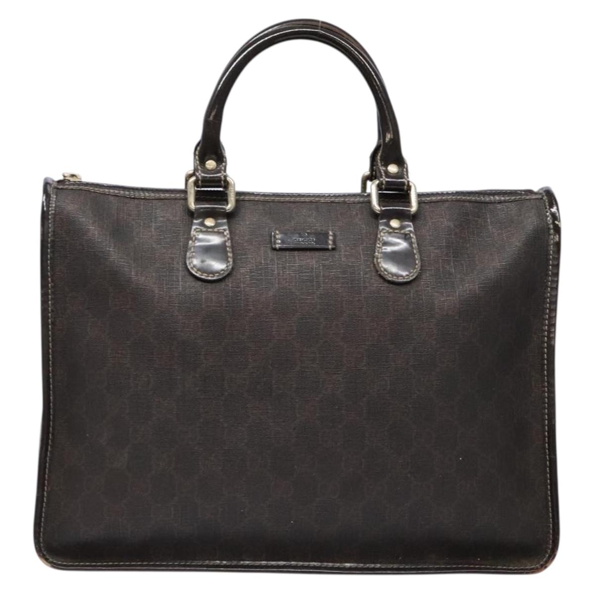 GUCCI GG Supreme Hand Bag PVC Leather Gold Dark Brown 190259 Auth 139819