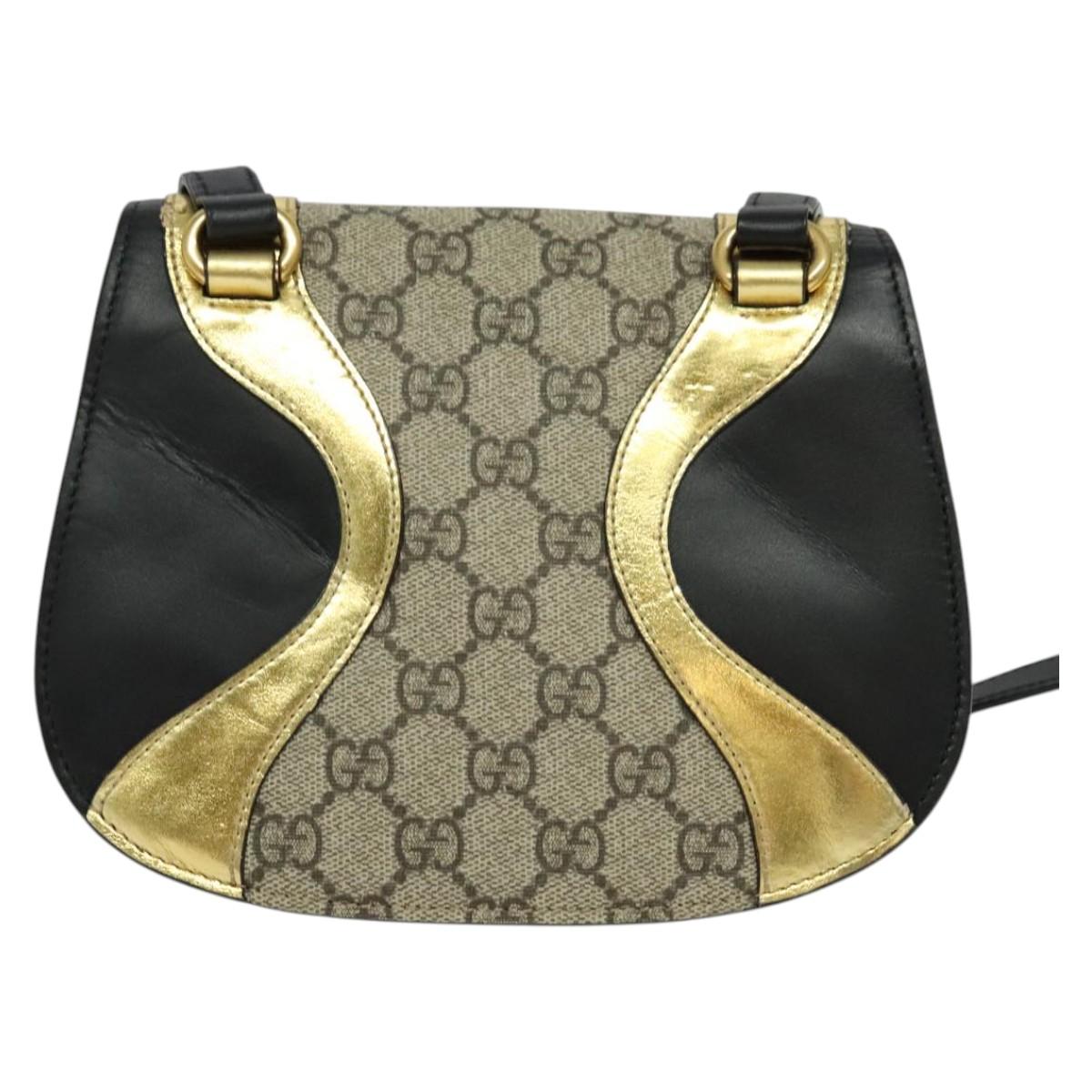 GUCCI GG Supreme Ojiride Bag Leather PVC Leather Beige Black 500781 Auth bs28443
