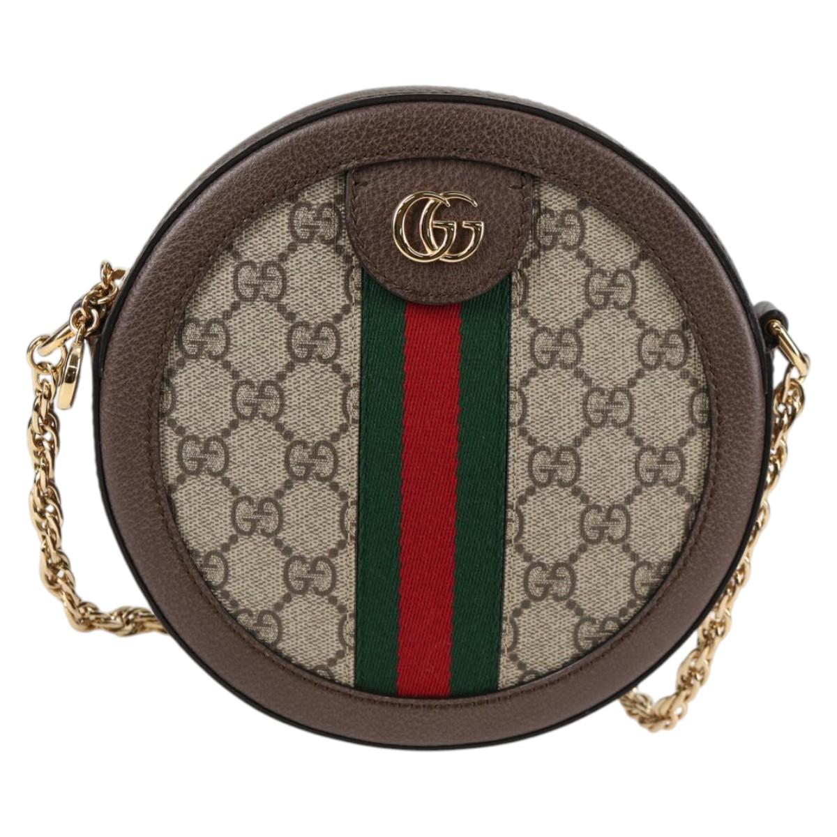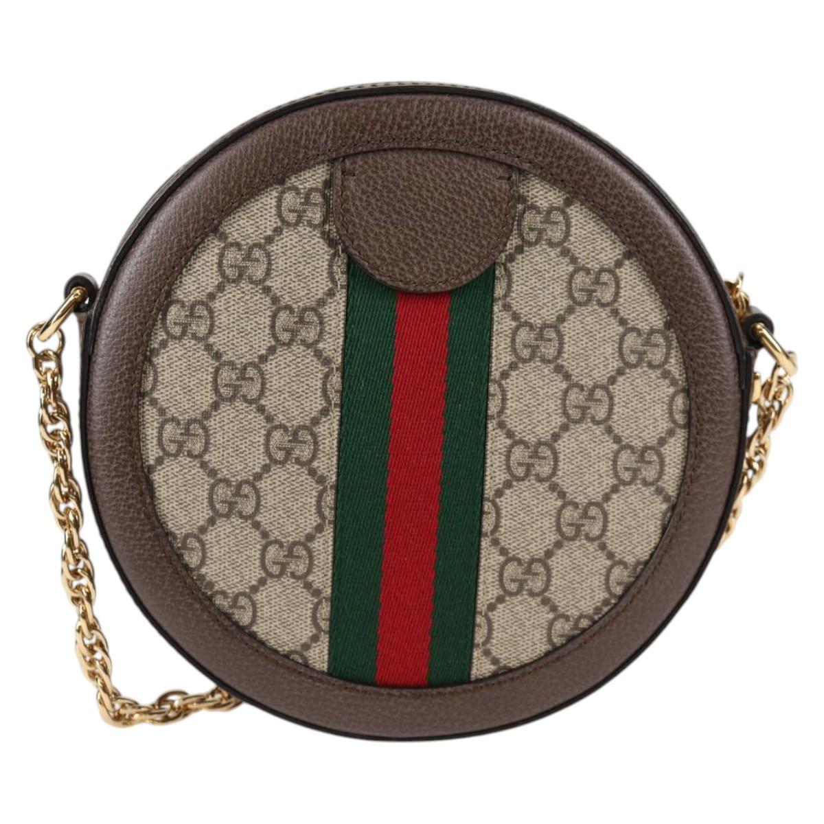 GUCCI GG Supreme Ophidia Chain Web Sherry Line Bag PVC Beige 550618 Auth 138002A