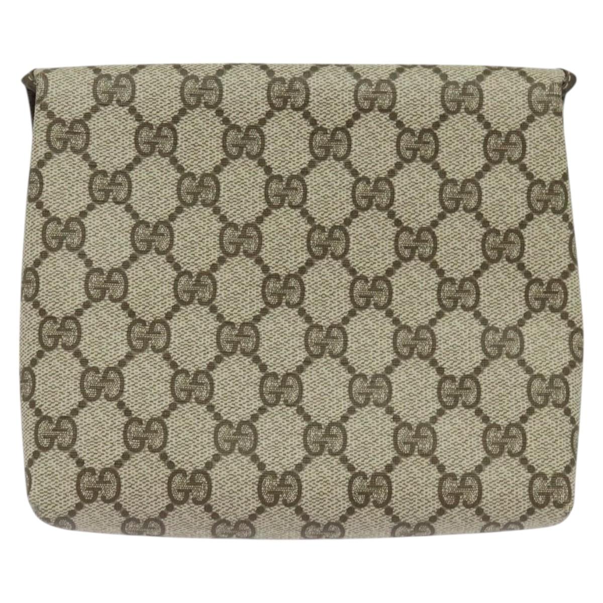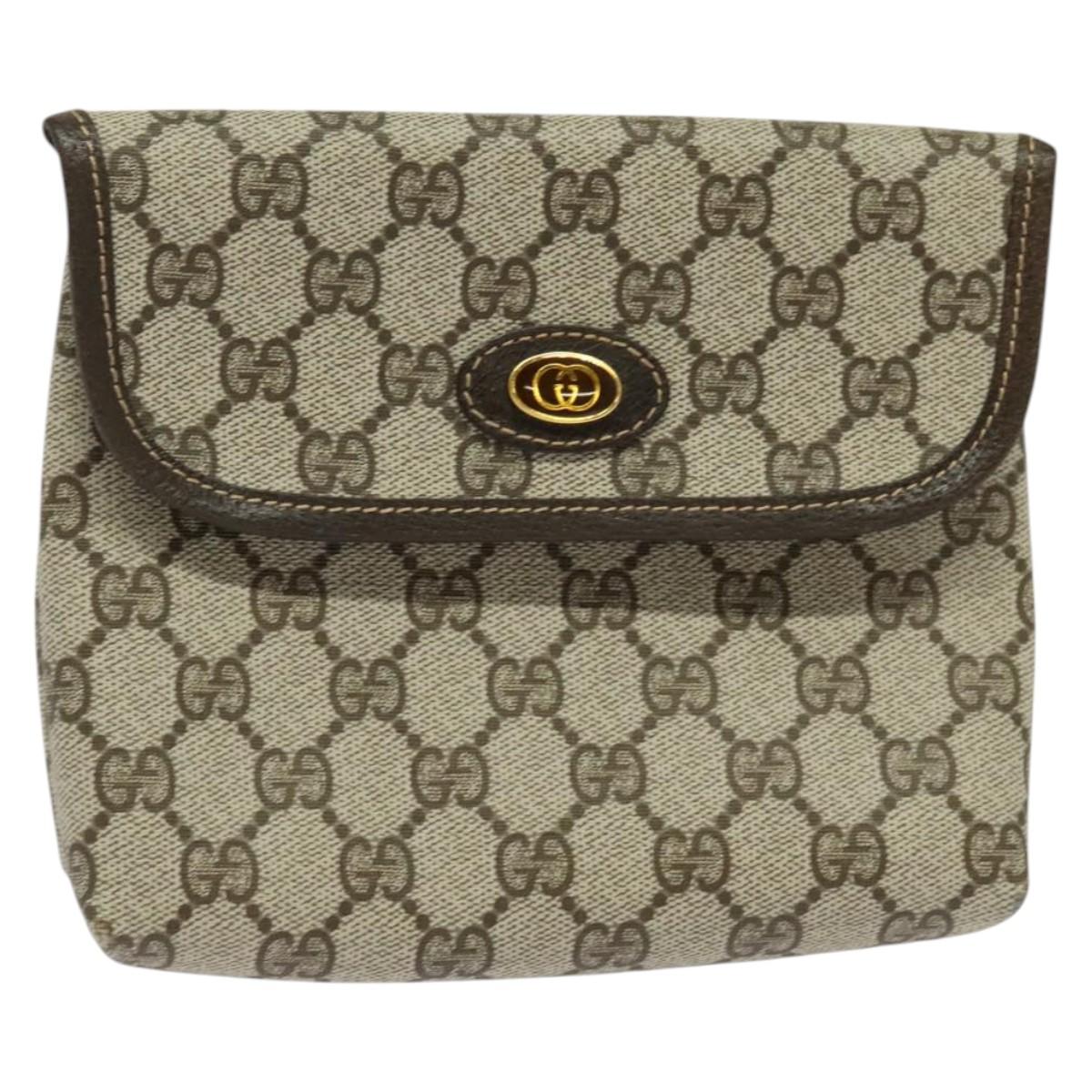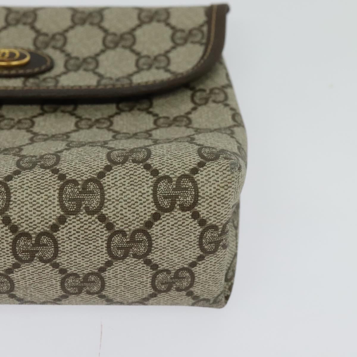 GUCCI GG Supreme Pouch PVC Beige Gold Auth BA3951