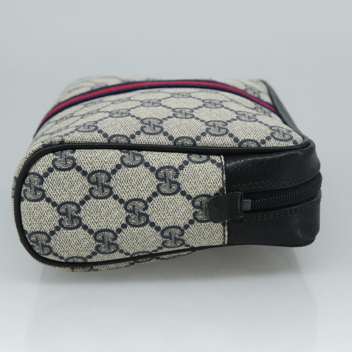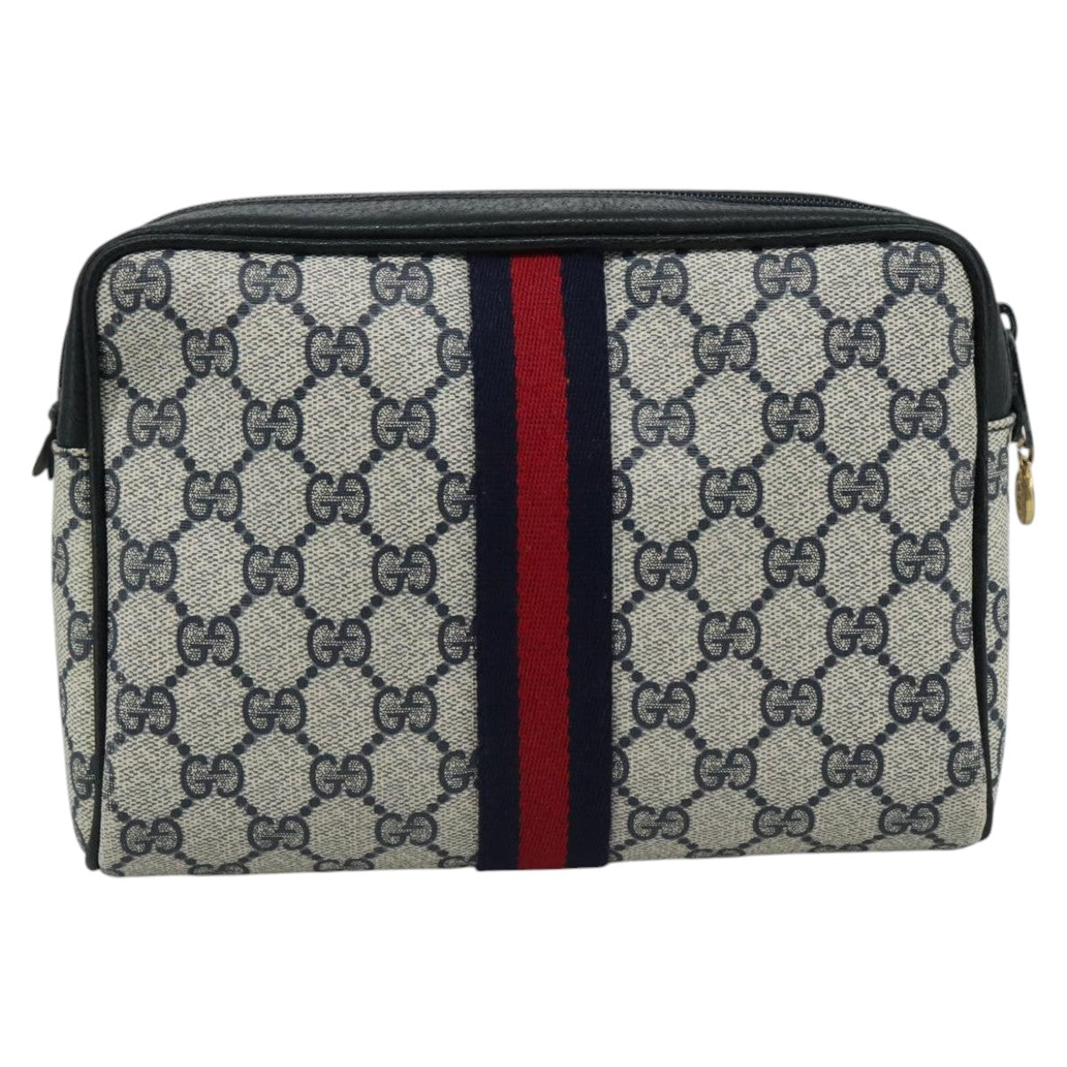 GUCCI GG Supreme Sherry Line Clutch Bag PVC Navy Red 010 378 Auth yk16908