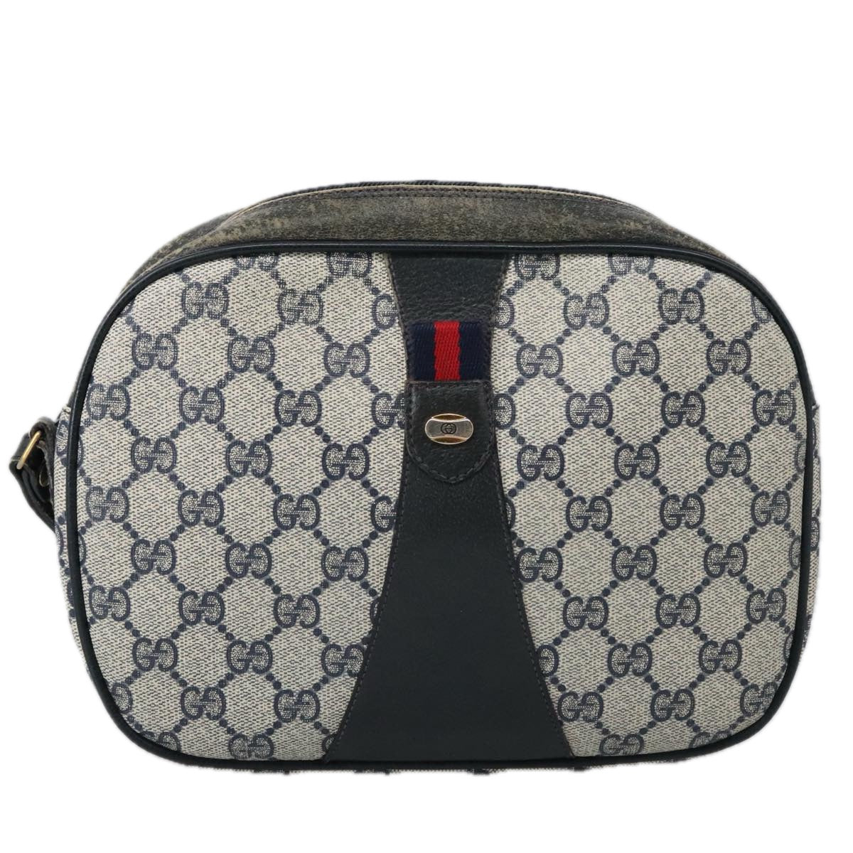 GUCCI GG Supreme Sherry Line Clutch Bag PVC Navy Red 89 01 034 Auth 103583