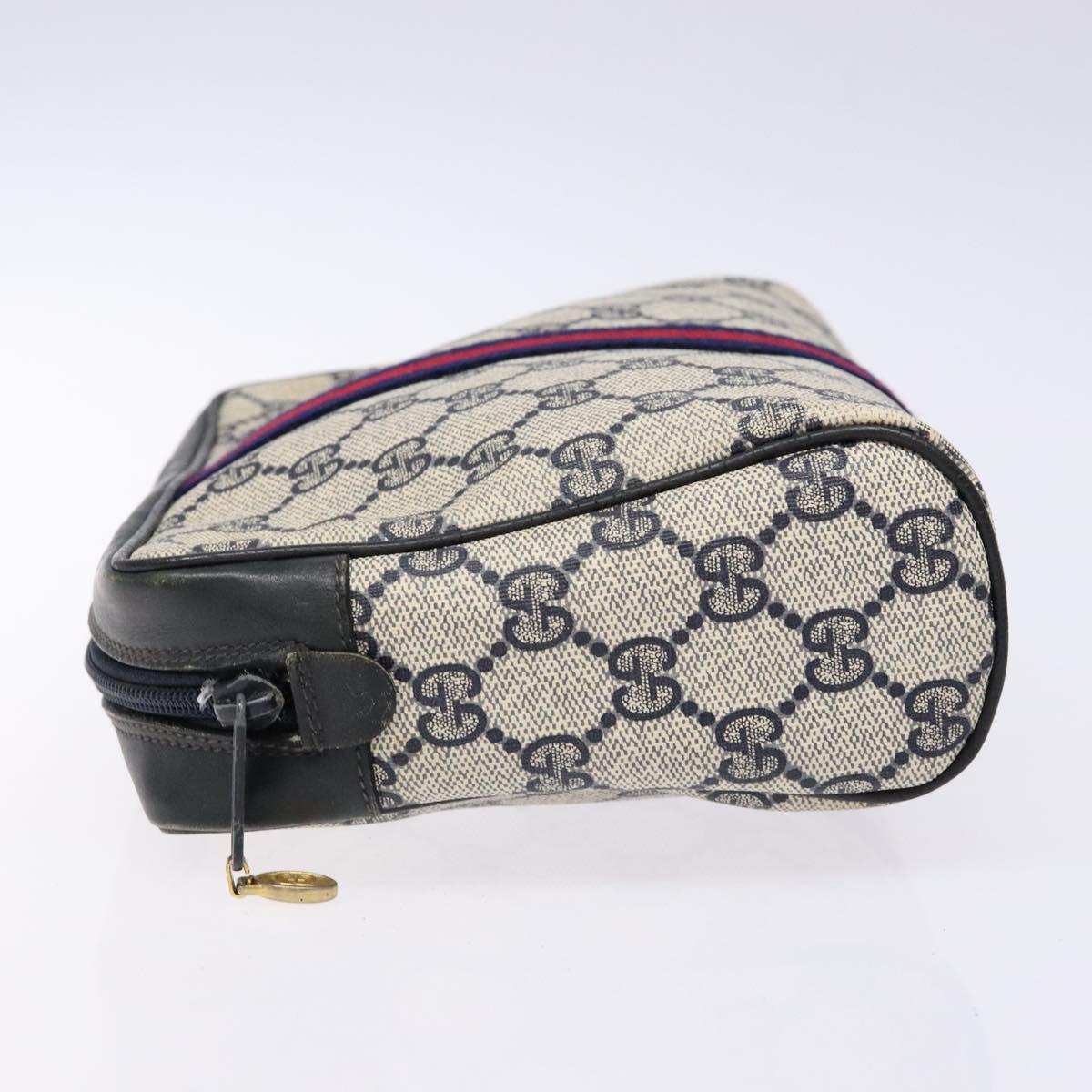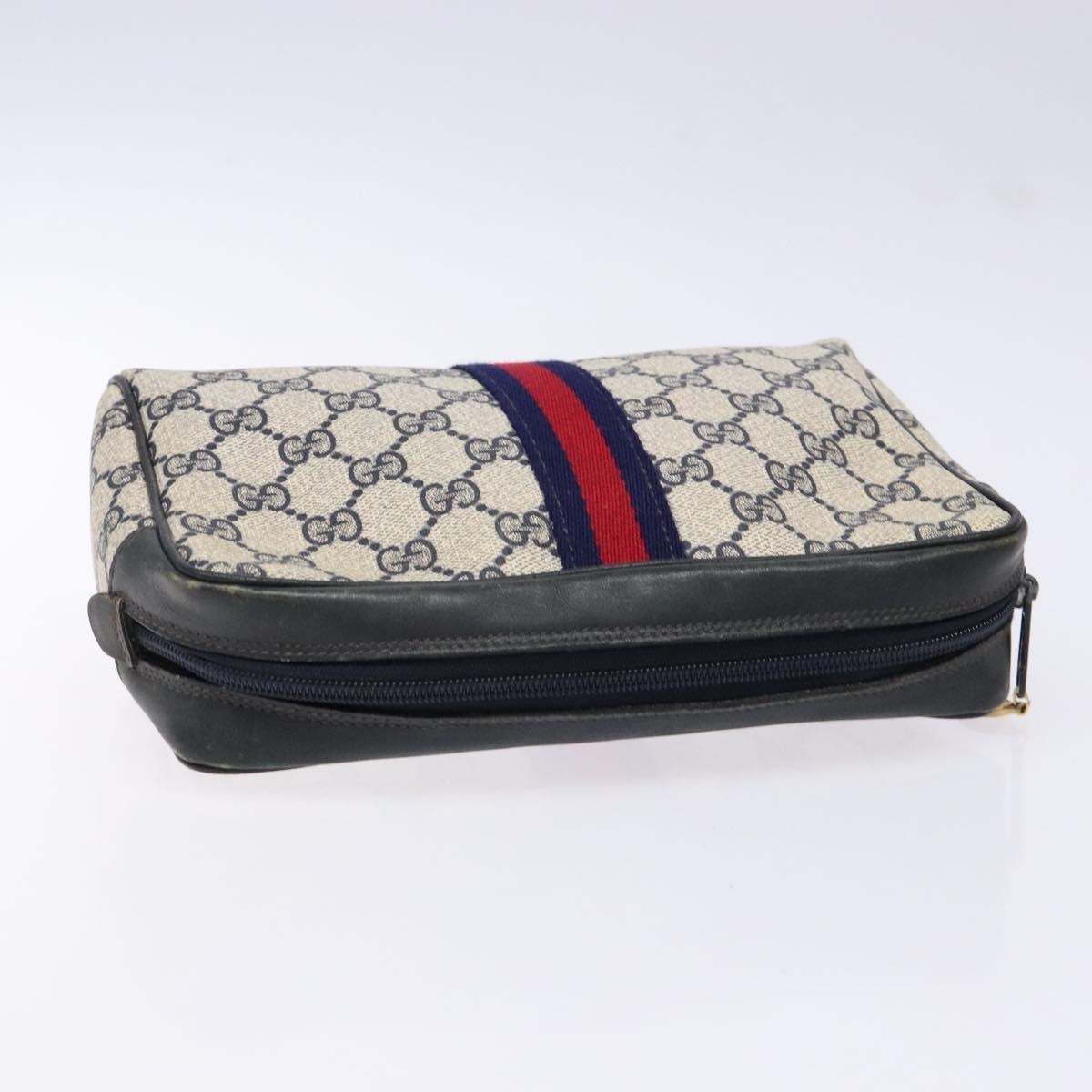 GUCCI GG Supreme Sherry Line Clutch Bag PVC Navy Gold Red Auth 139750