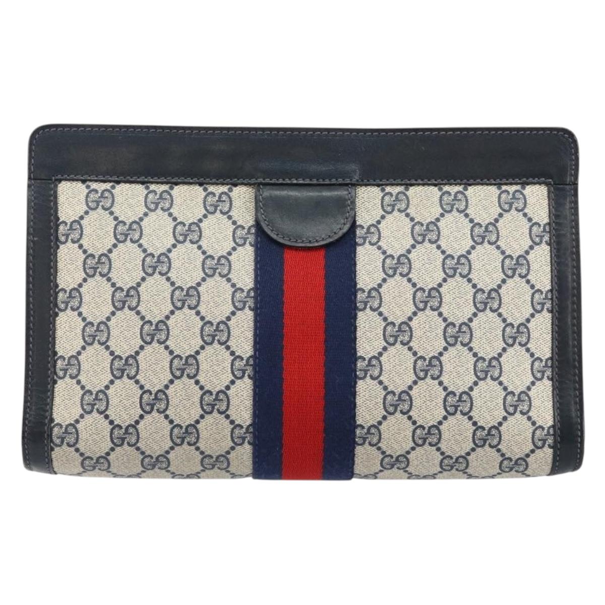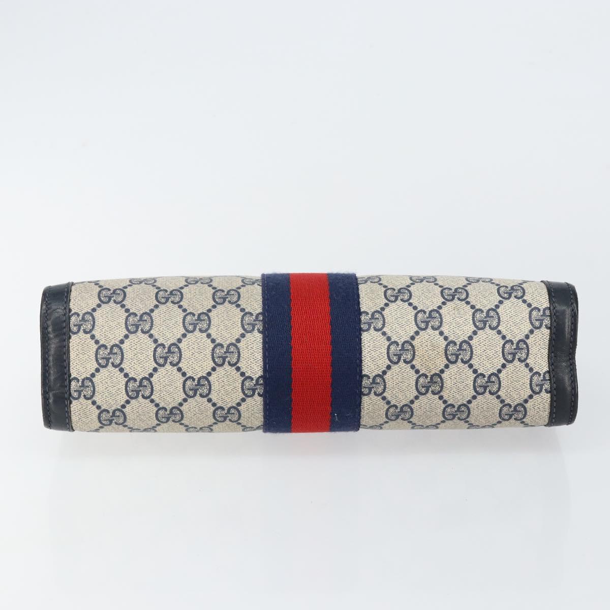 GUCCI GG Supreme Sherry Line Clutch Bag PVC Navy Red Auth 144387