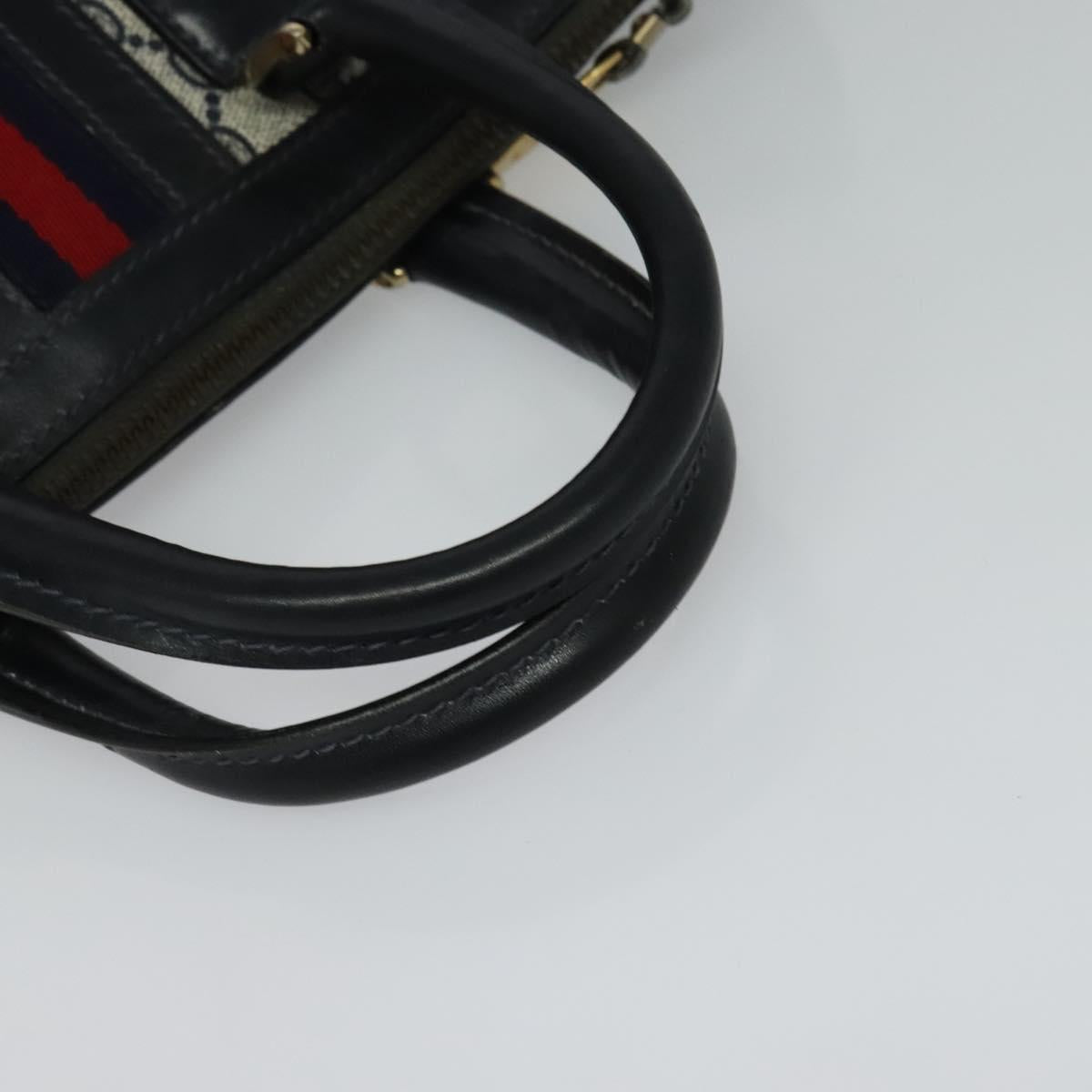 GUCCI GG Supreme Sherry Line Hand Bag PVC Navy Gold Auth mr1357
