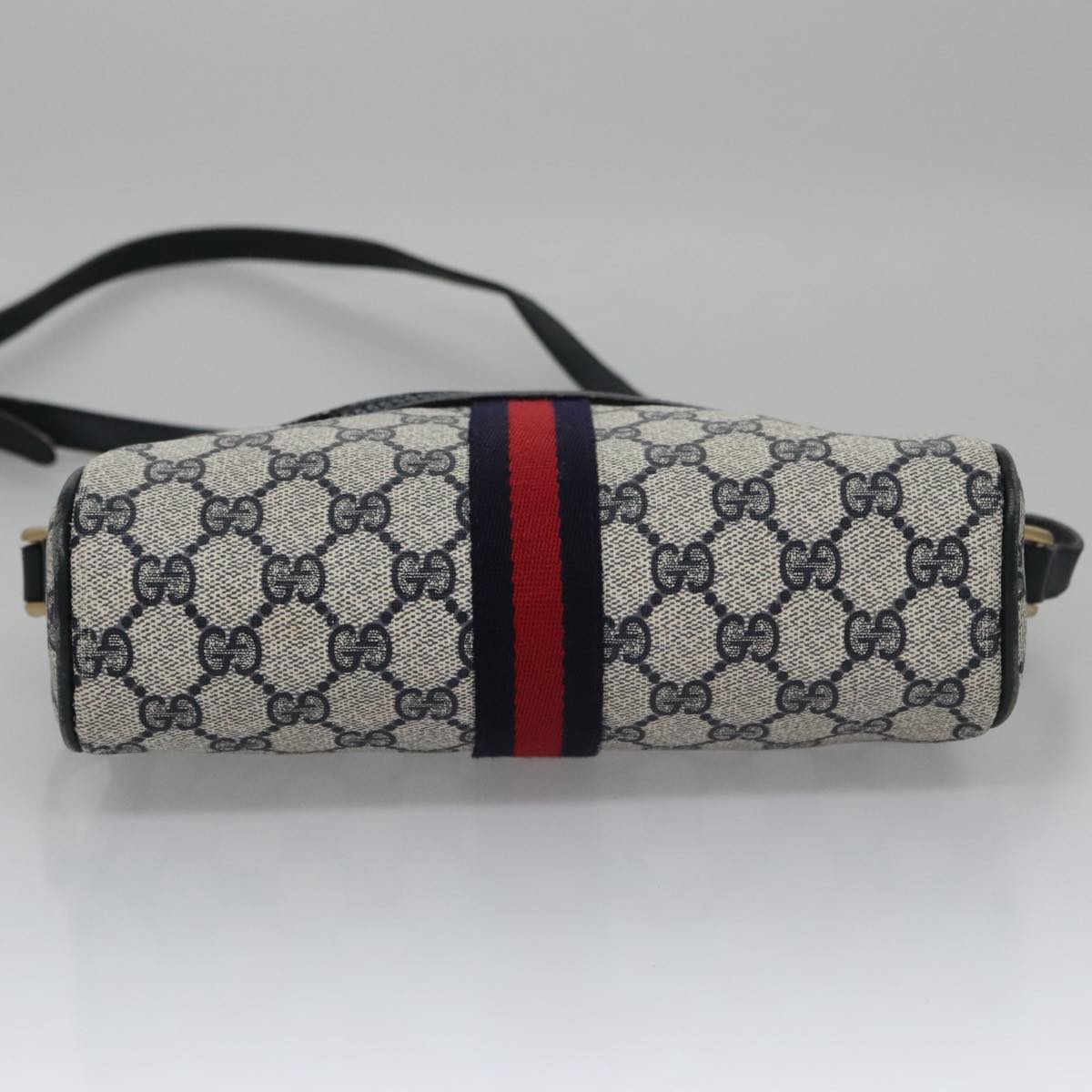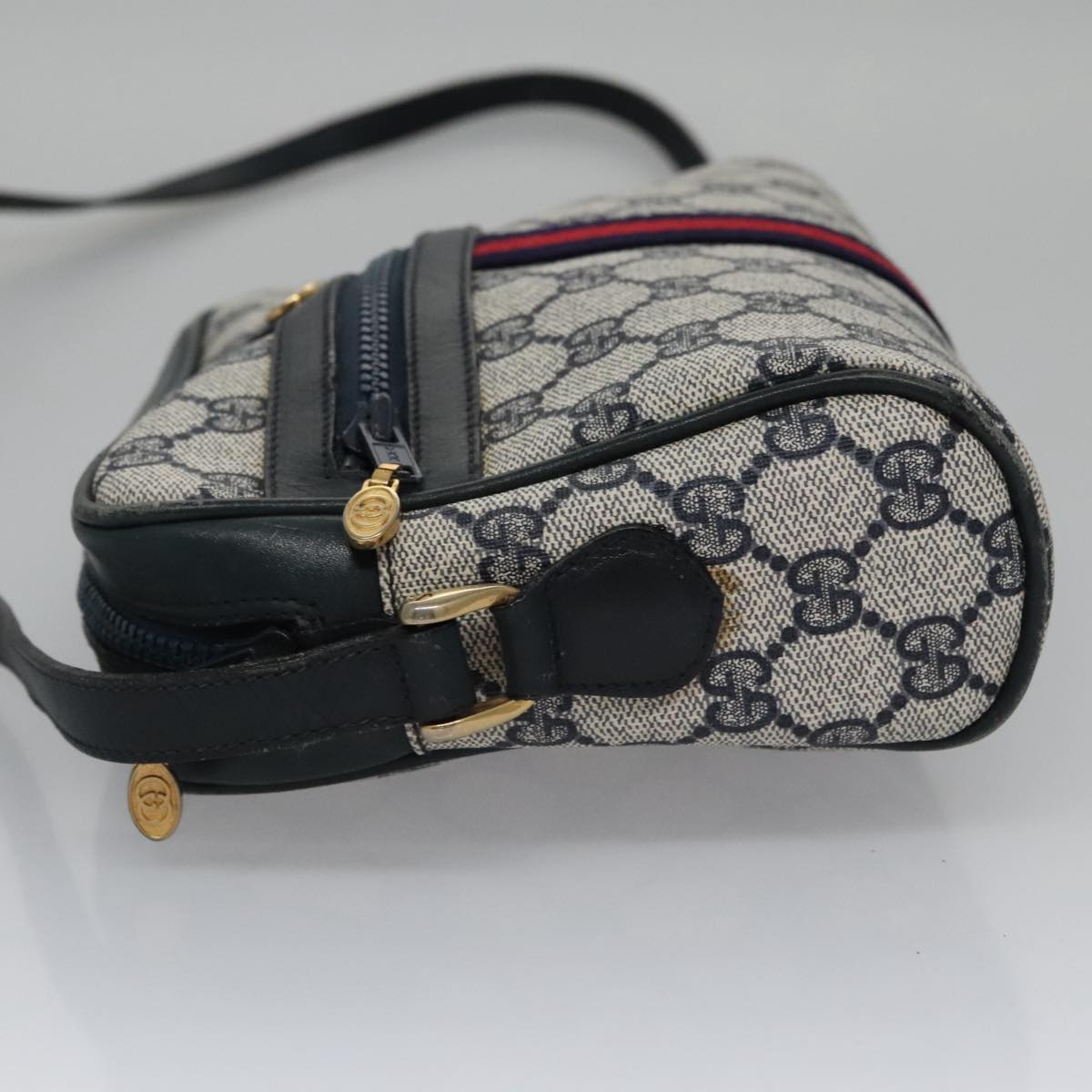 GUCCI GG Supreme Sherry Line Shoulder Bag PVC Leather Navy Red Auth ep7021