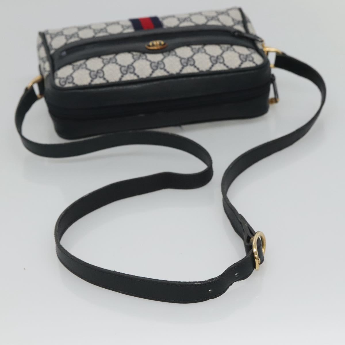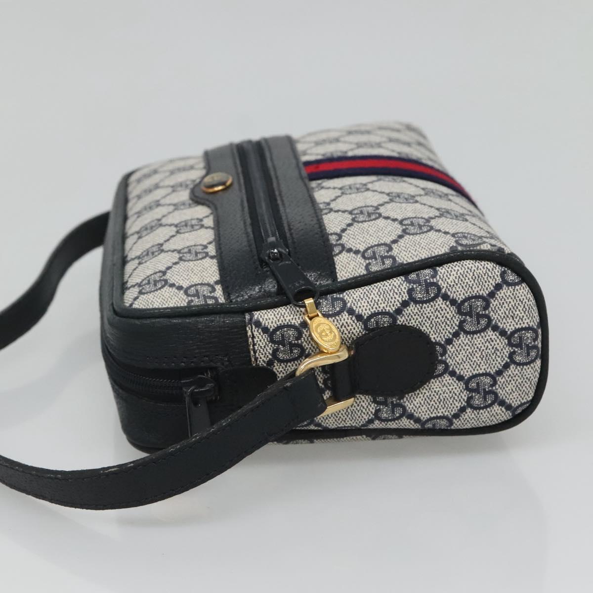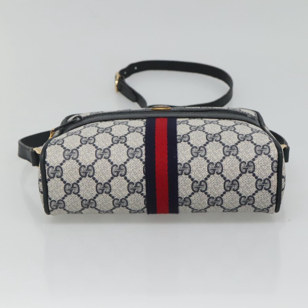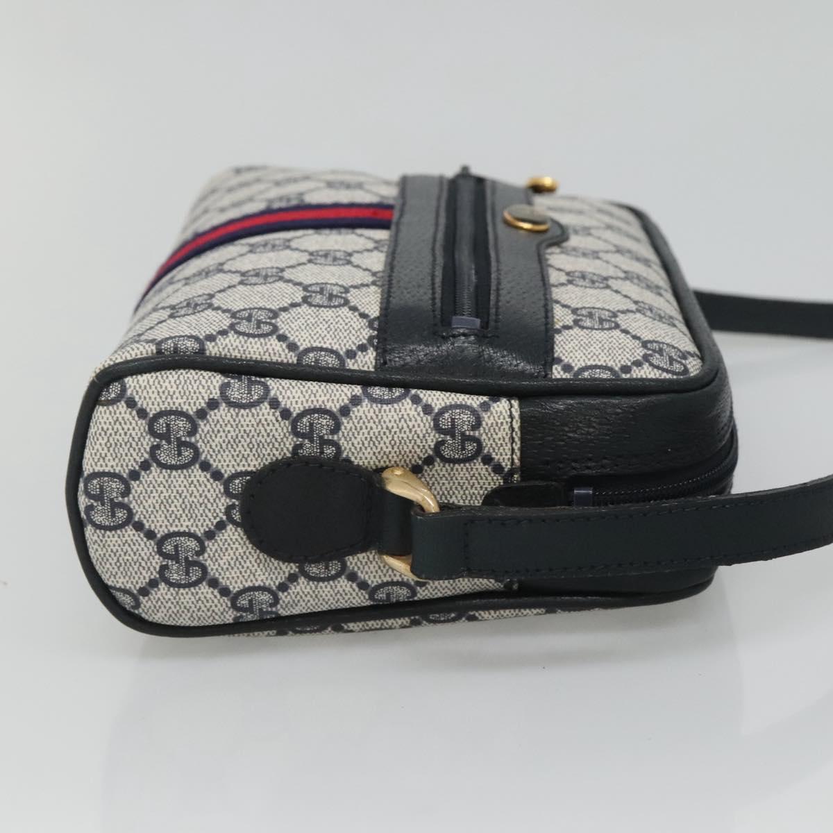 GUCCI GG Supreme Sherry Line Shoulder Bag PVC Navy Gold 010 378 Auth 127173