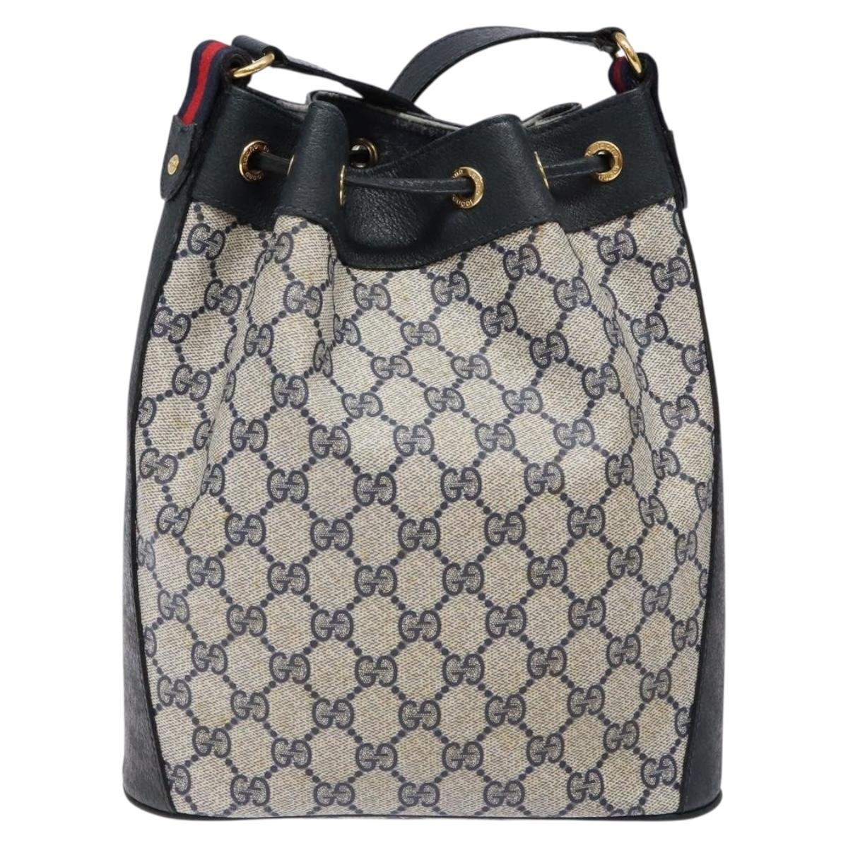 GUCCI GG Supreme Sherry Line Shoulder Bag PVC Navy Gold 164 02 034 Auth ep10545