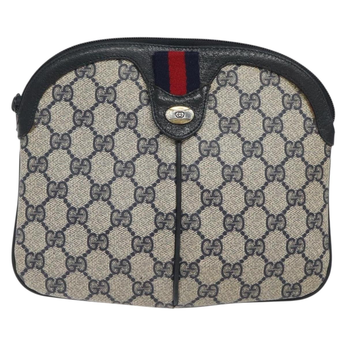 GUCCI GG Supreme Sherry Line Shoulder Bag PVC Navy Gold 68 02 047 Auth ep9524