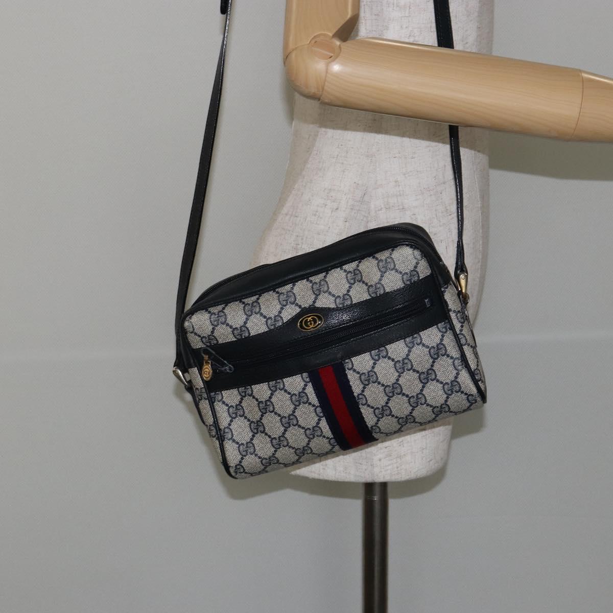 GUCCI GG Supreme Sherry Line Shoulder Bag PVC Navy Gold 72 001 3654 Auth 143492