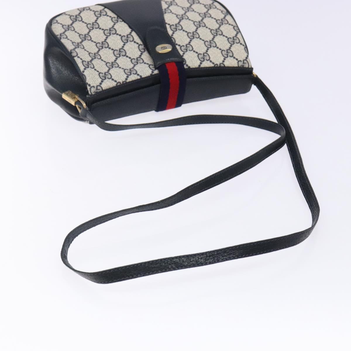 GUCCI GG Supreme Sherry Line Shoulder Bag PVC Navy Gold 72 02 024 Auth BA5227