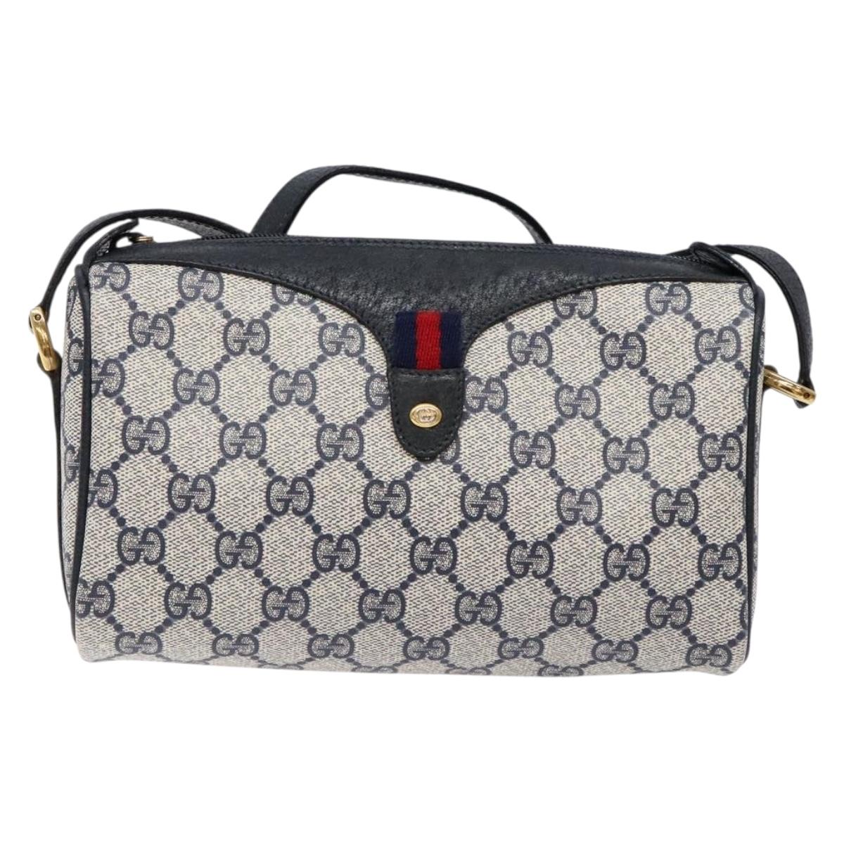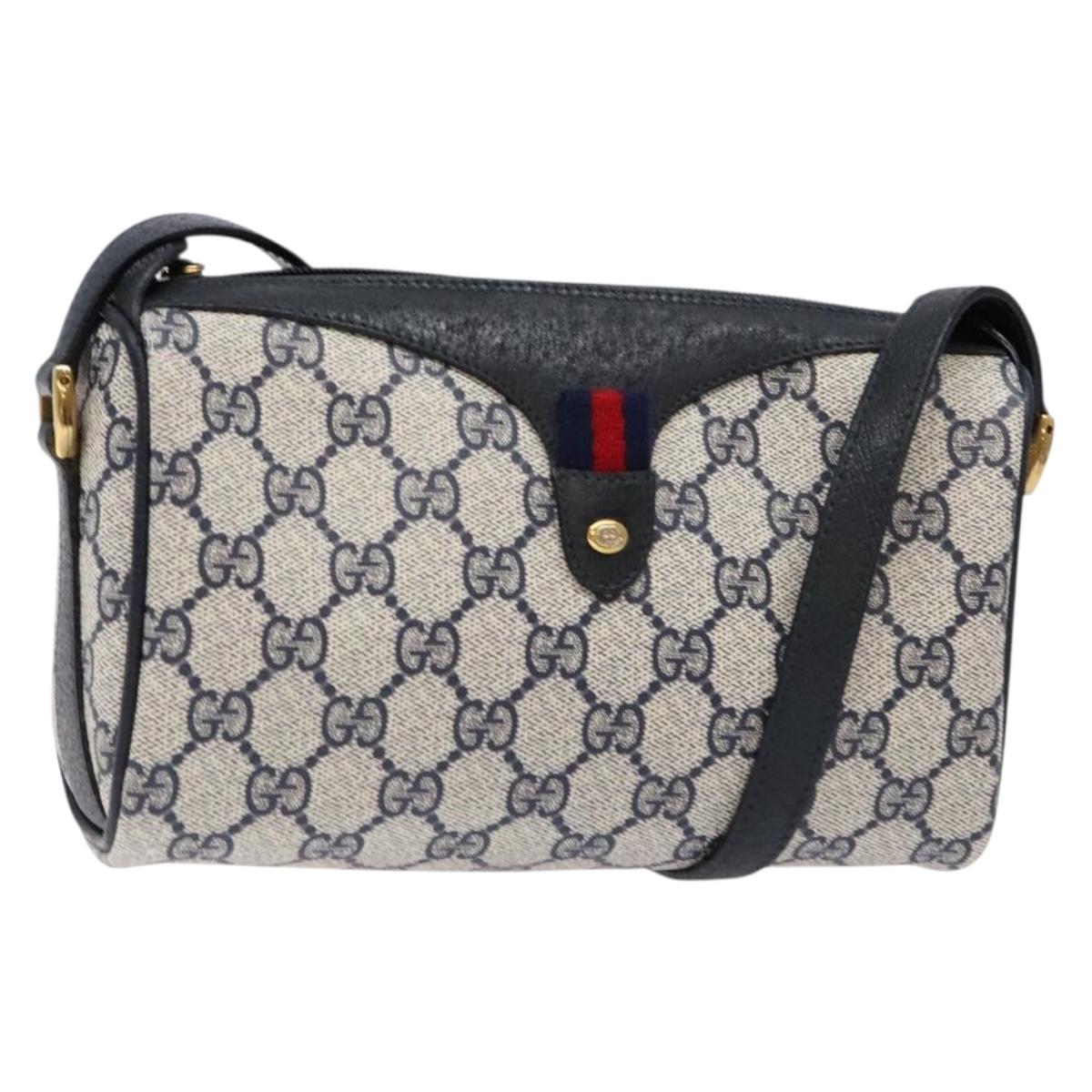 GUCCI GG Supreme Sherry Line Shoulder Bag PVC Navy Gold 89 02 018 Auth BA4022