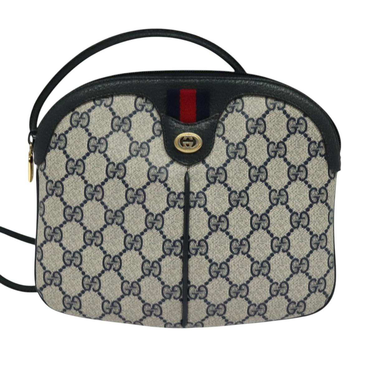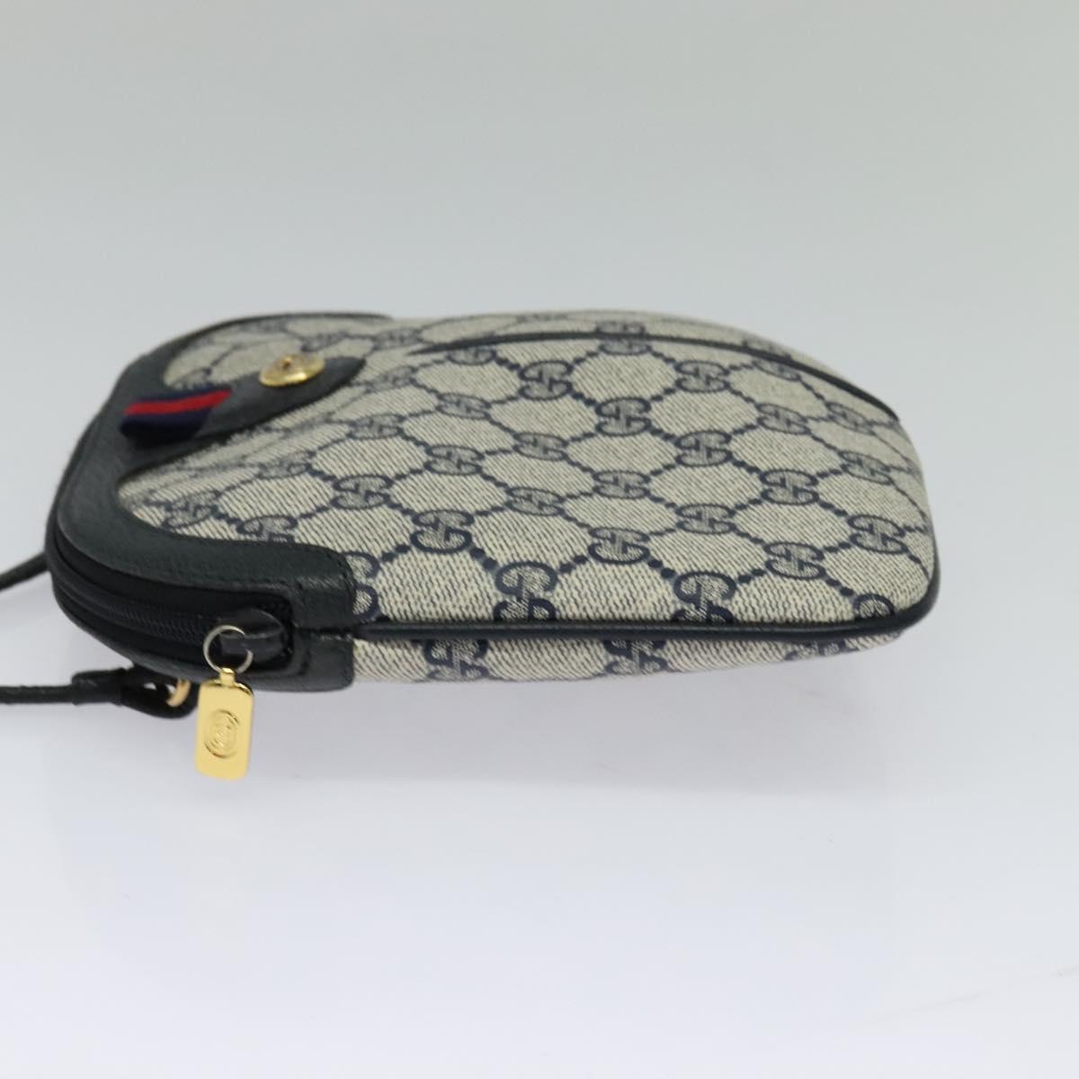 GUCCI GG Supreme Sherry Line Shoulder Bag PVC Navy Gold 904 02 047 Auth SW846