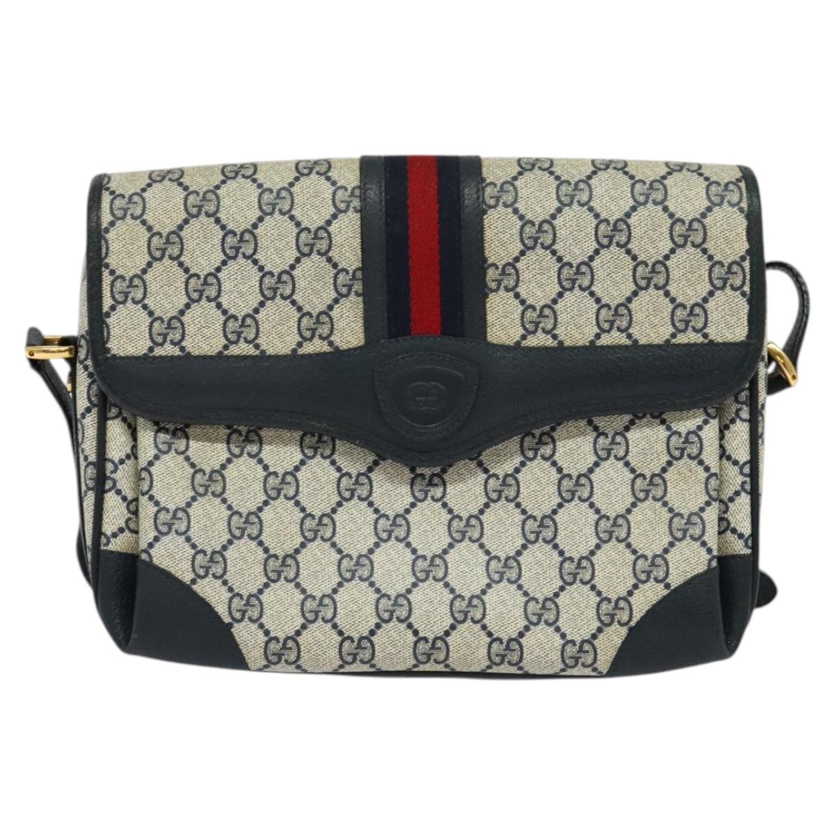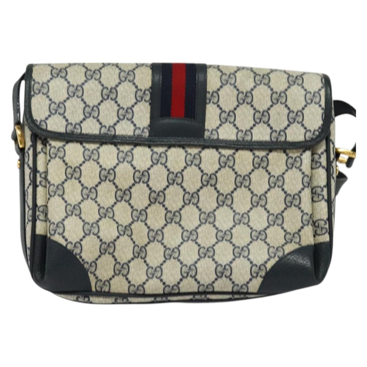 GUCCI GG Supreme Sherry Line Shoulder Bag PVC Navy Gold 001 116 0844 Auth gh118