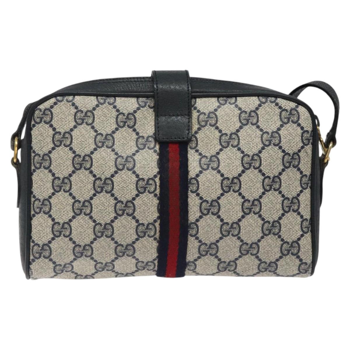 GUCCI GG Supreme Sherry Line Shoulder Bag PVC Navy Red 89 02 055 Auth 123046
