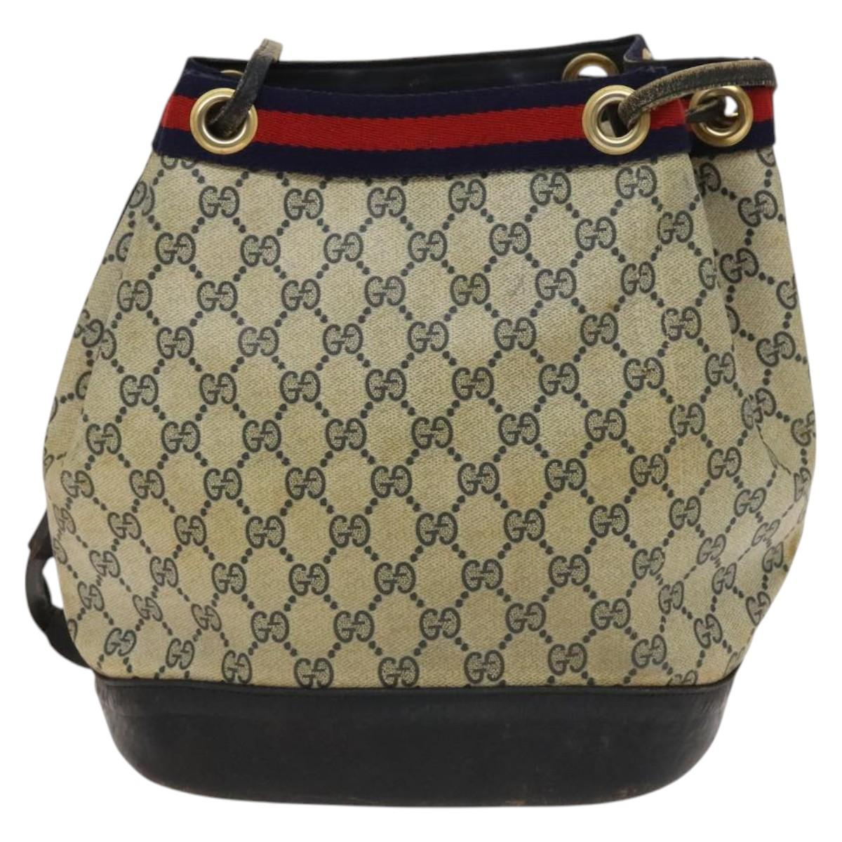 GUCCI GG Supreme Sherry Line Shoulder Bag PVC Navy Gold Red Auth 123716