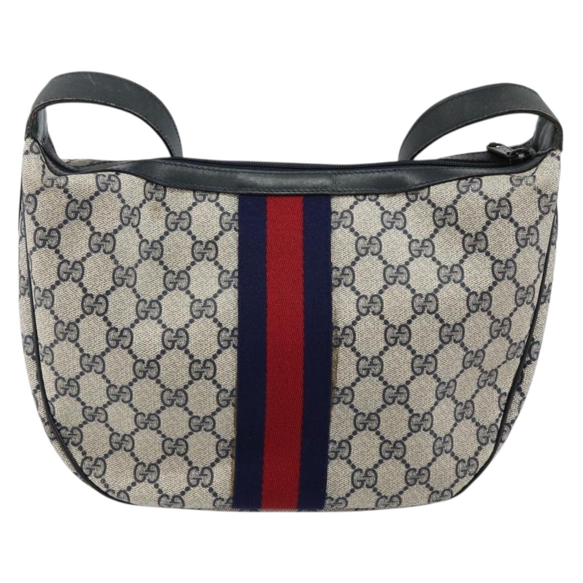 GUCCI GG Supreme Sherry Line Shoulder Bag PVC Navy Gold Red Auth 143575