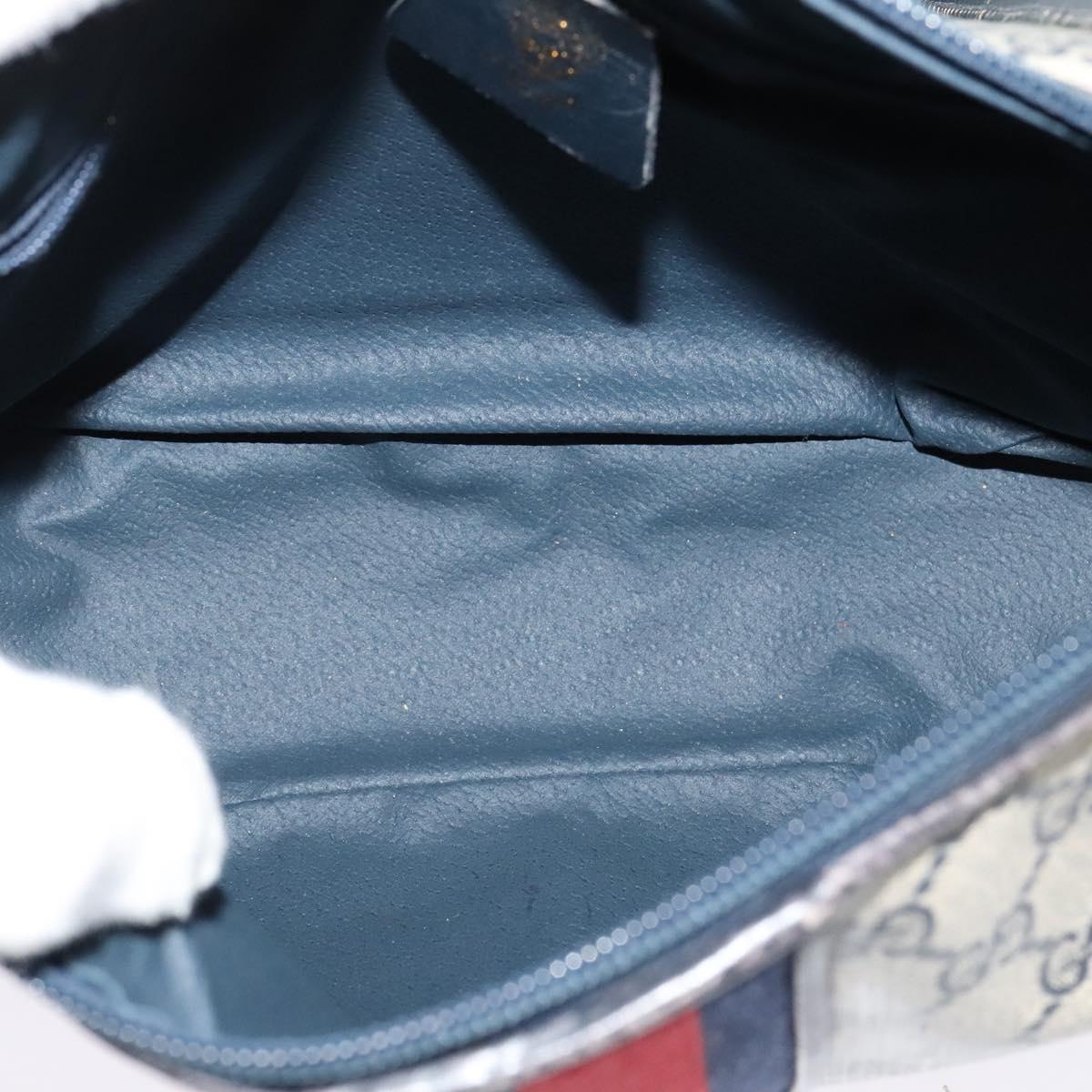 GUCCI GG Supreme Sherry Line Shoulder Bag PVC Navy Gold Red Auth ep9445