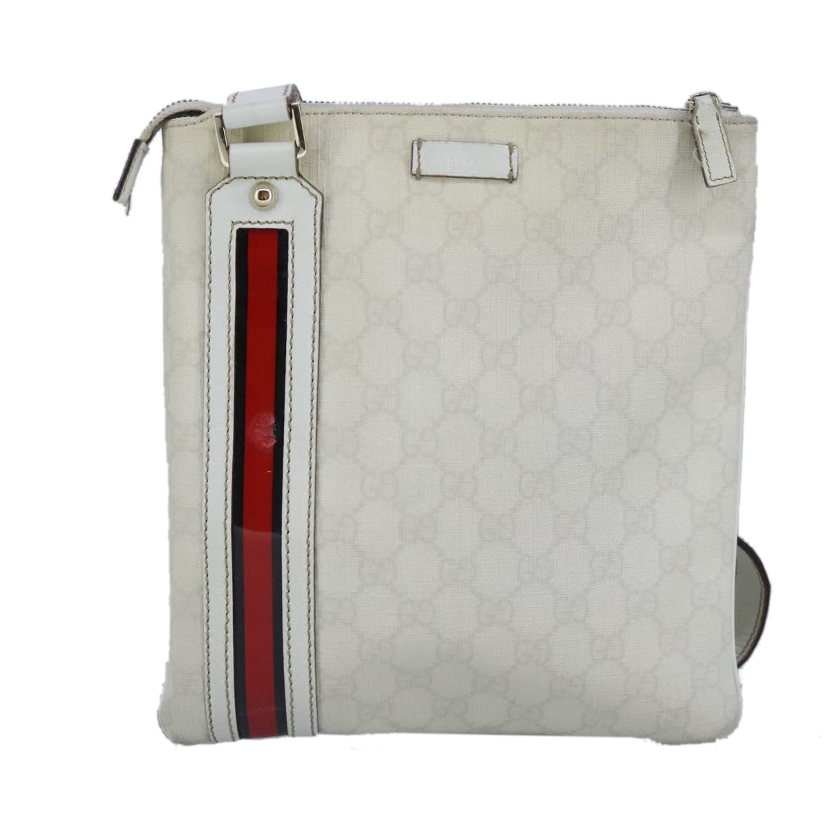 GUCCI GG Supreme Sherry Line Shoulder Bag PVC Pink White Red 153244 Auth 100980