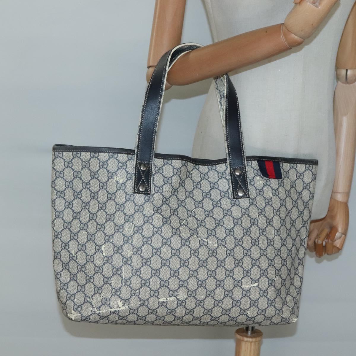 GUCCI GG Supreme Sherry Line Tote Bag PVC Navy Silver 211134 Auth bs27569