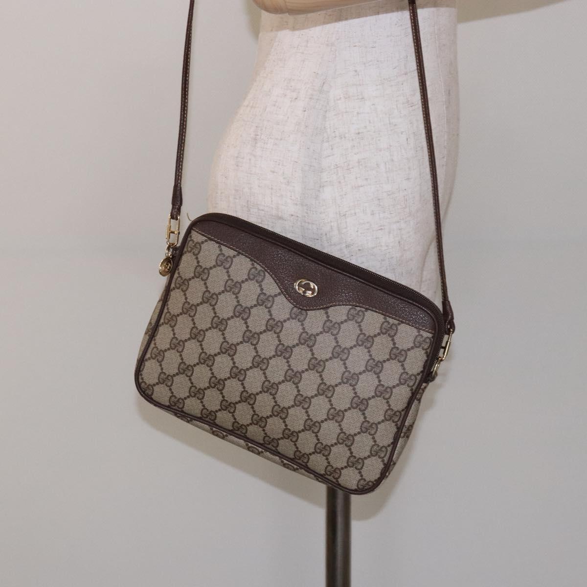 GUCCI GG Supreme Shoulder Bag PVC Beige Gold 156 02 068 Auth bs28869