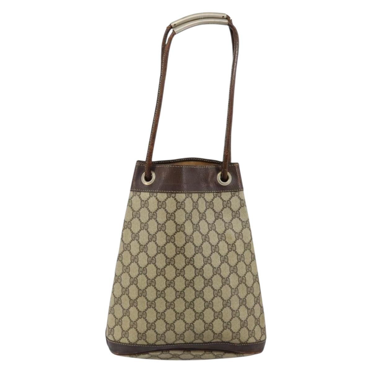 GUCCI GG Supreme Shoulder Bag PVC Beige Gold Auth 143238