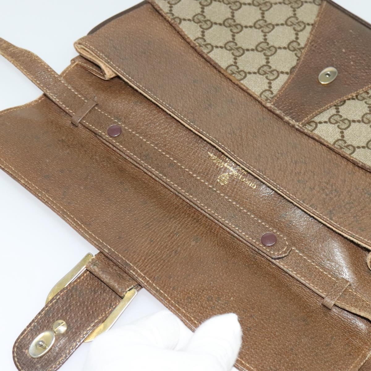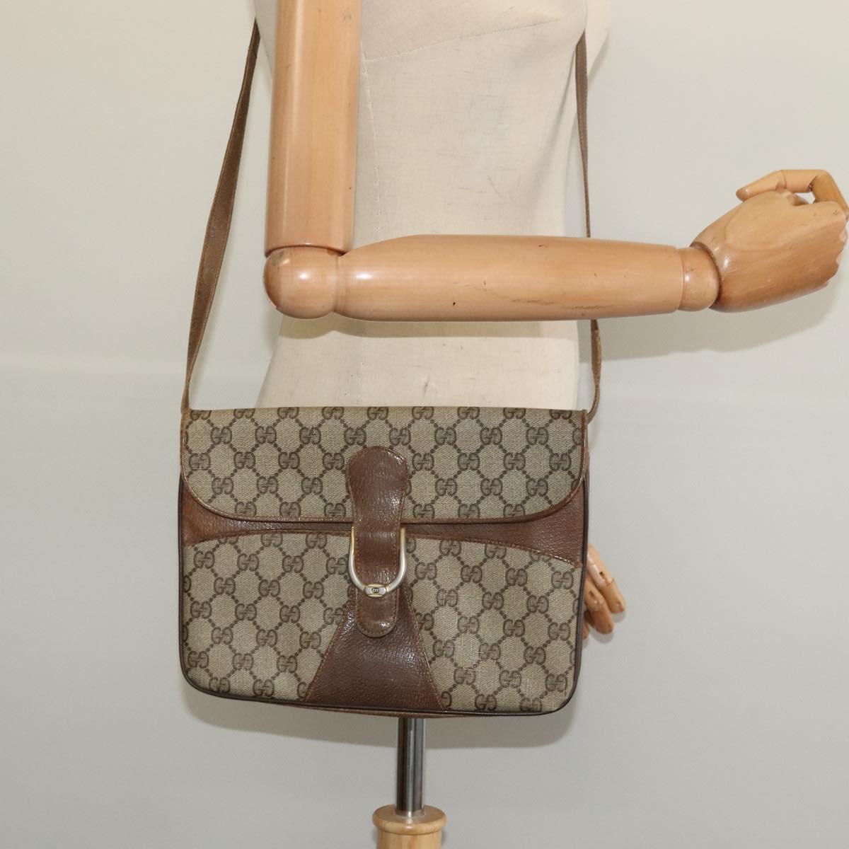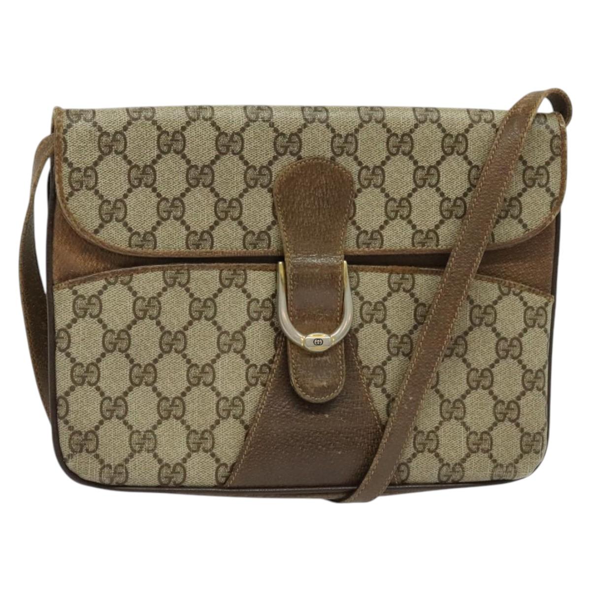 GUCCI GG Supreme Shoulder Bag PVC Beige Gold Auth BA4262
