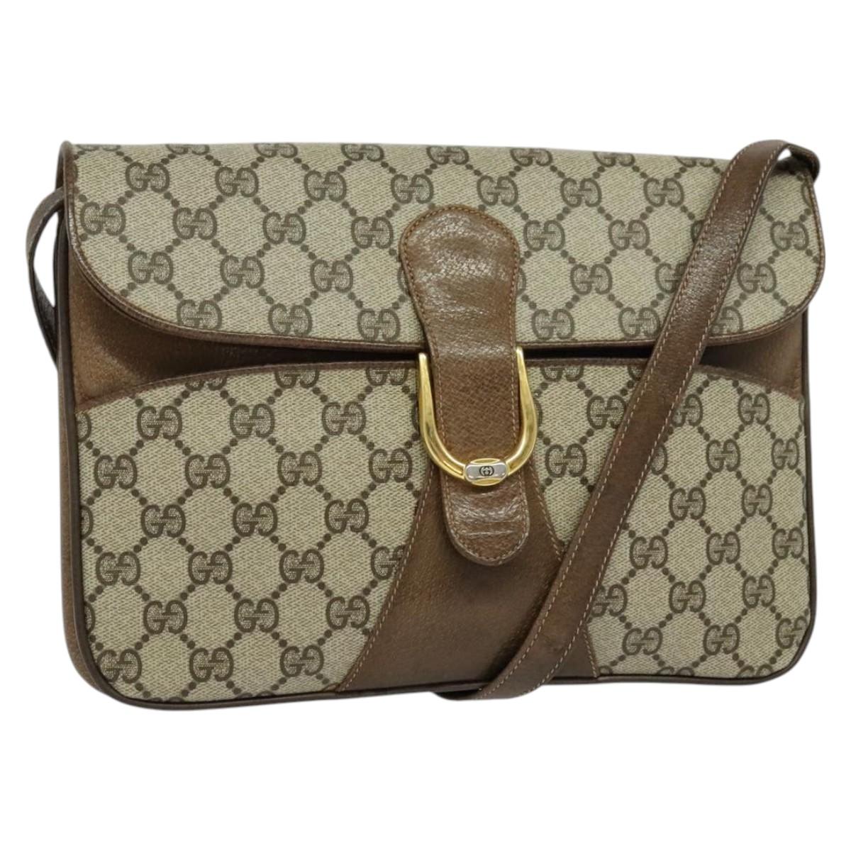 GUCCI GG Supreme Shoulder Bag PVC Beige Gold Auth BD1547