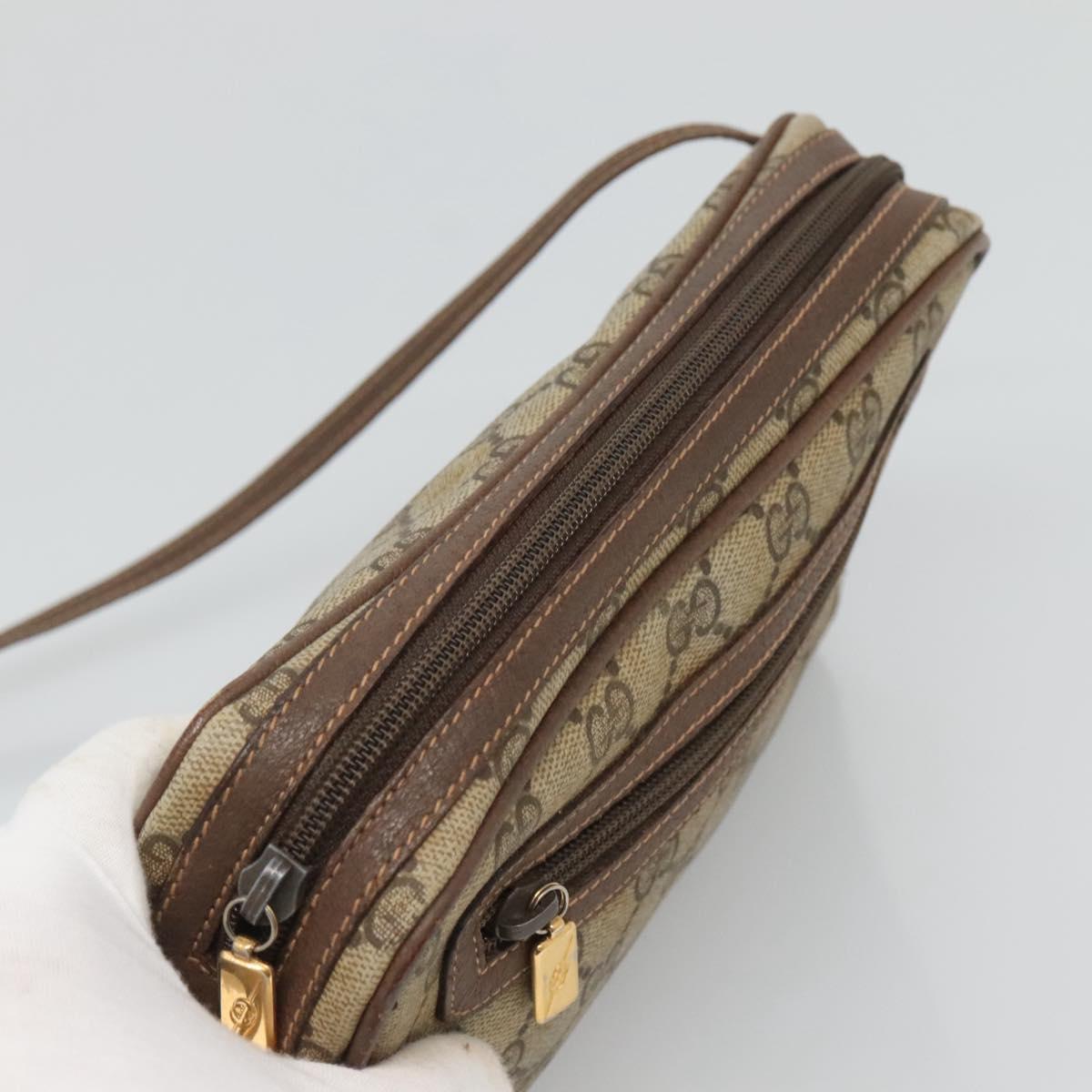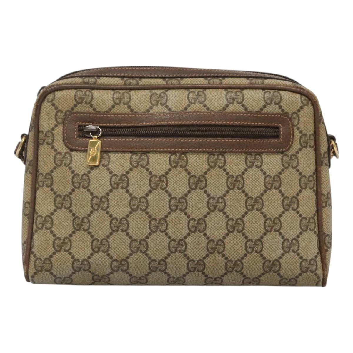 GUCCI GG Supreme Shoulder Bag PVC Beige Gold Auth SW844