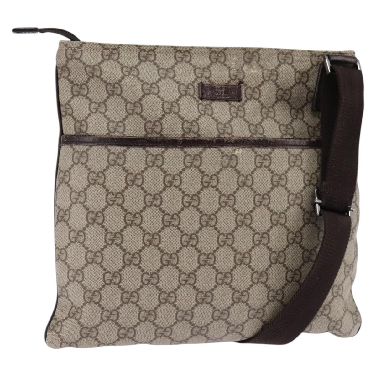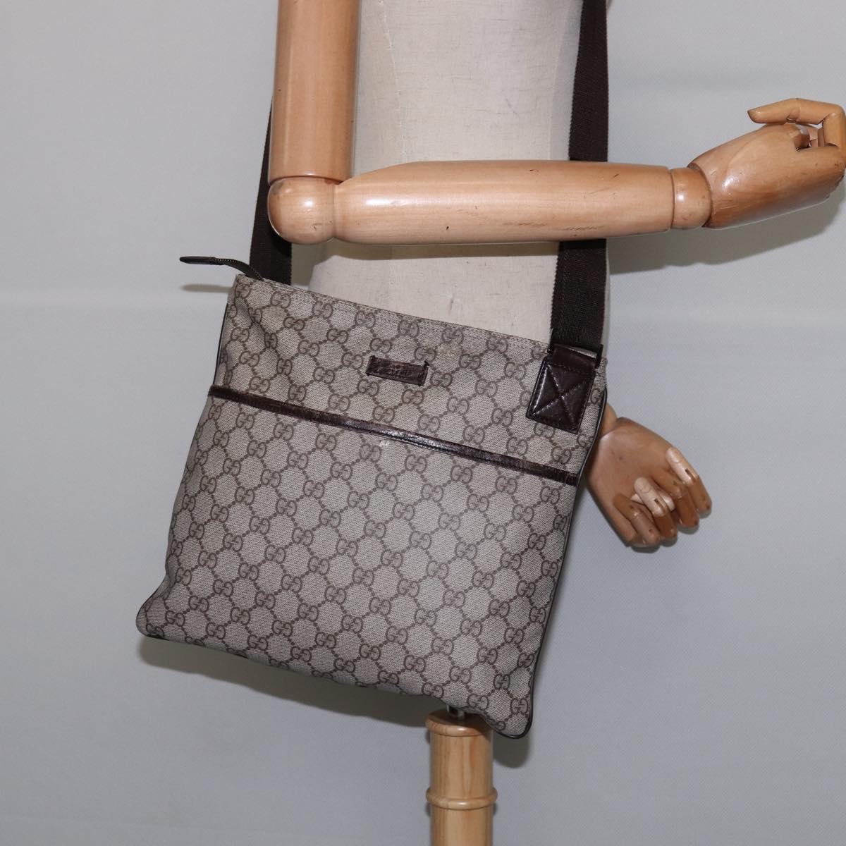 GUCCI GG Supreme Shoulder Bag PVC Beige Silver 141626 Auth 144131