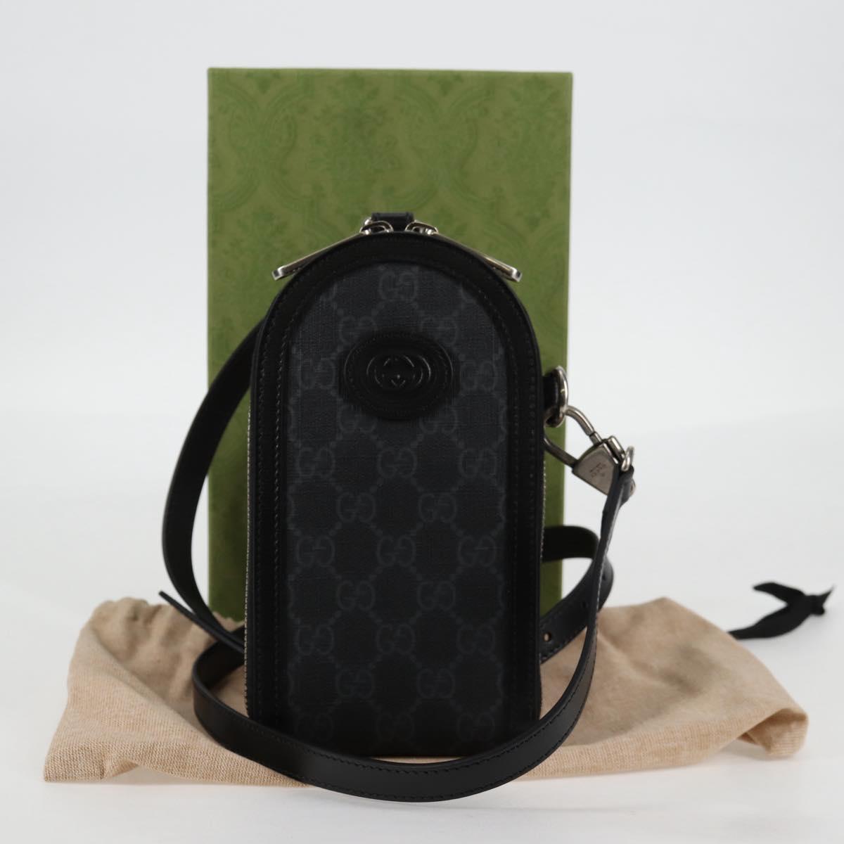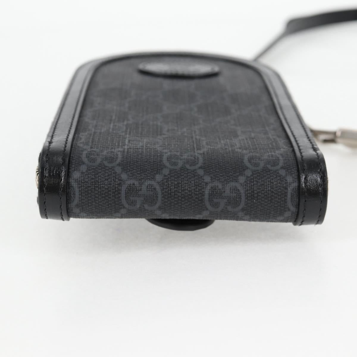 GUCCI GG Supreme Shoulder Bag PVC Black Silver Auth 118863M