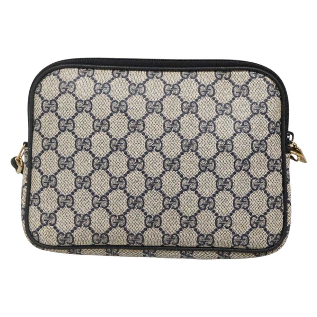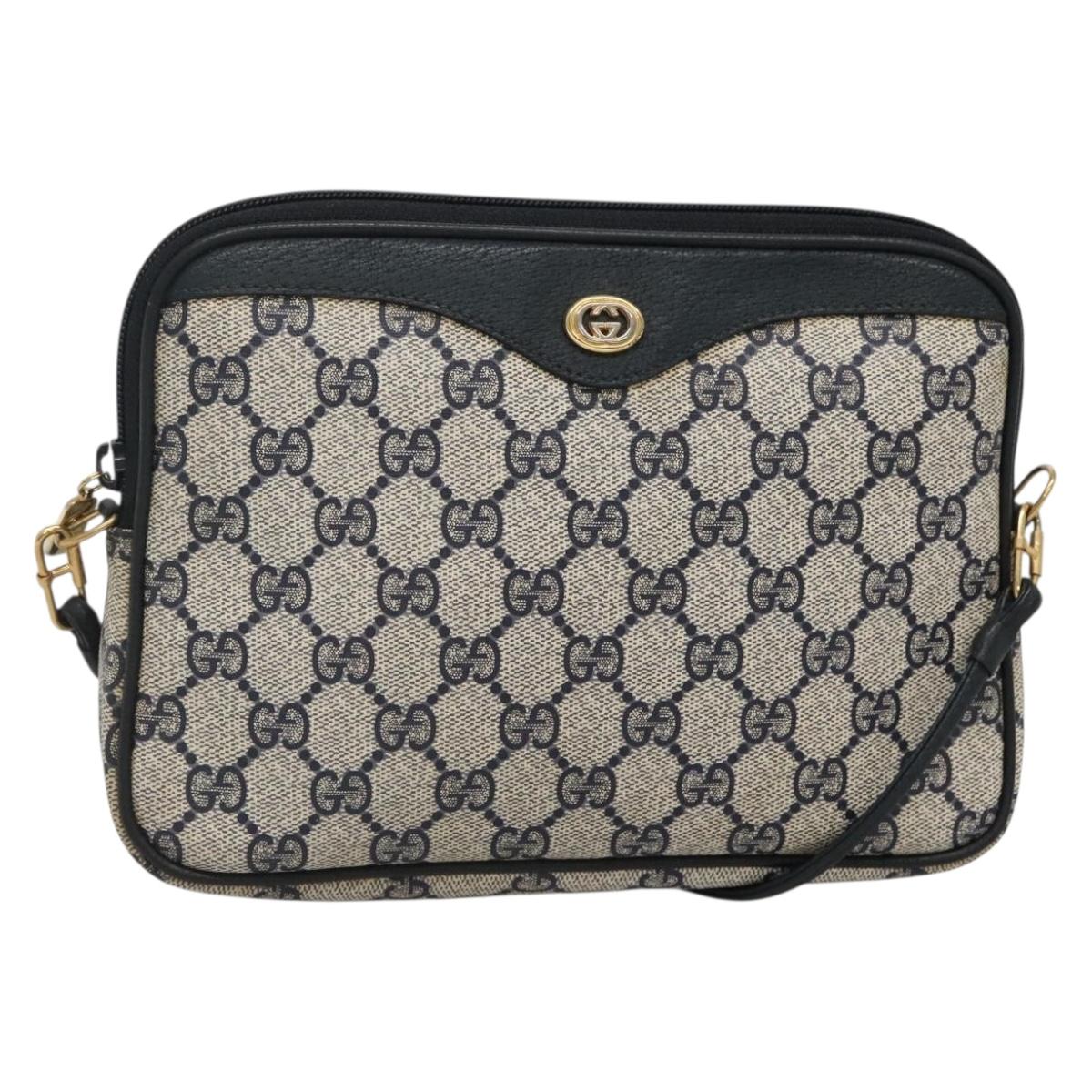 GUCCI GG Supreme Shoulder Bag PVC Navy Gold 97 02 068 Auth BA5298