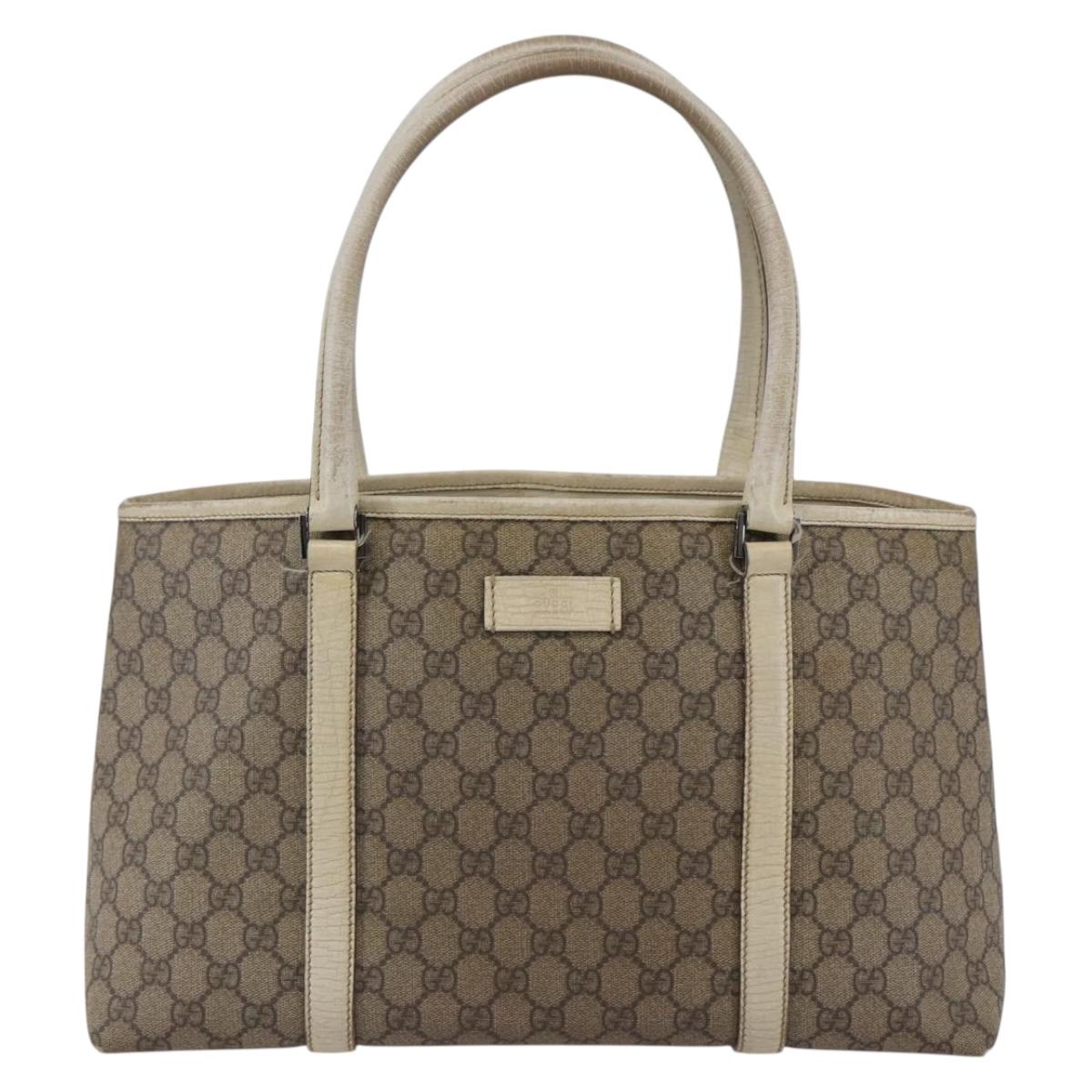 GUCCI GG Supreme Tote Bag PVC Beige Silver 114595 Auth 142526