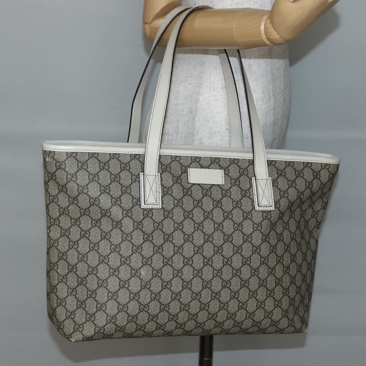 GUCCI GG Supreme Tote Bag PVC Beige Silver 211137 Auth BA5762