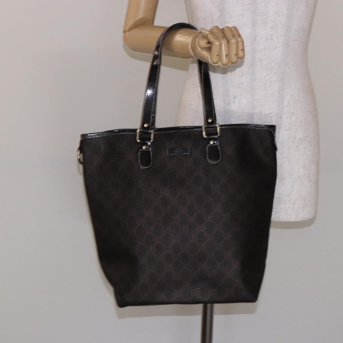 GUCCI GG Supreme Tote Bag PVC Dark Brown Gold 189896 Auth 141871
