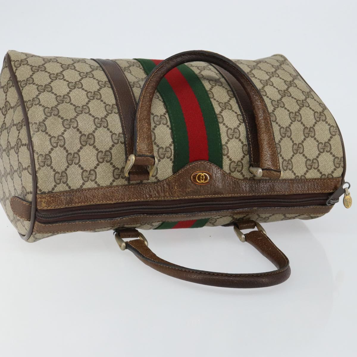 GUCCI GG Supreme Web Sherry Line Boston Bag PVC Beige 012 3842 58 Auth th6329