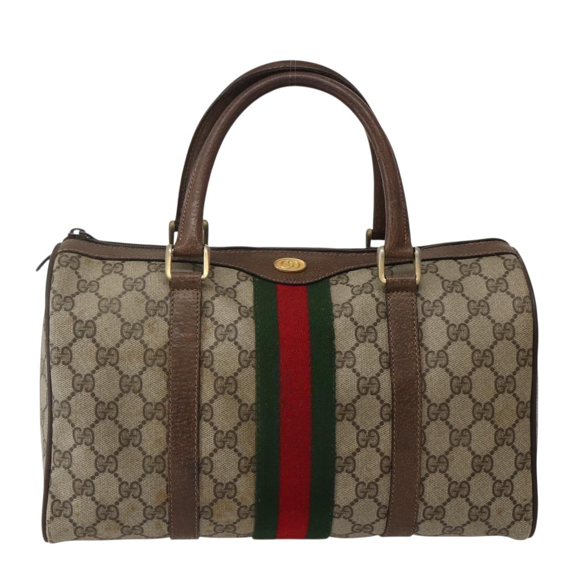 GUCCI GG Supreme Web Sherry Line Boston Bag PVC Beige 39 02 007 Auth ep10901