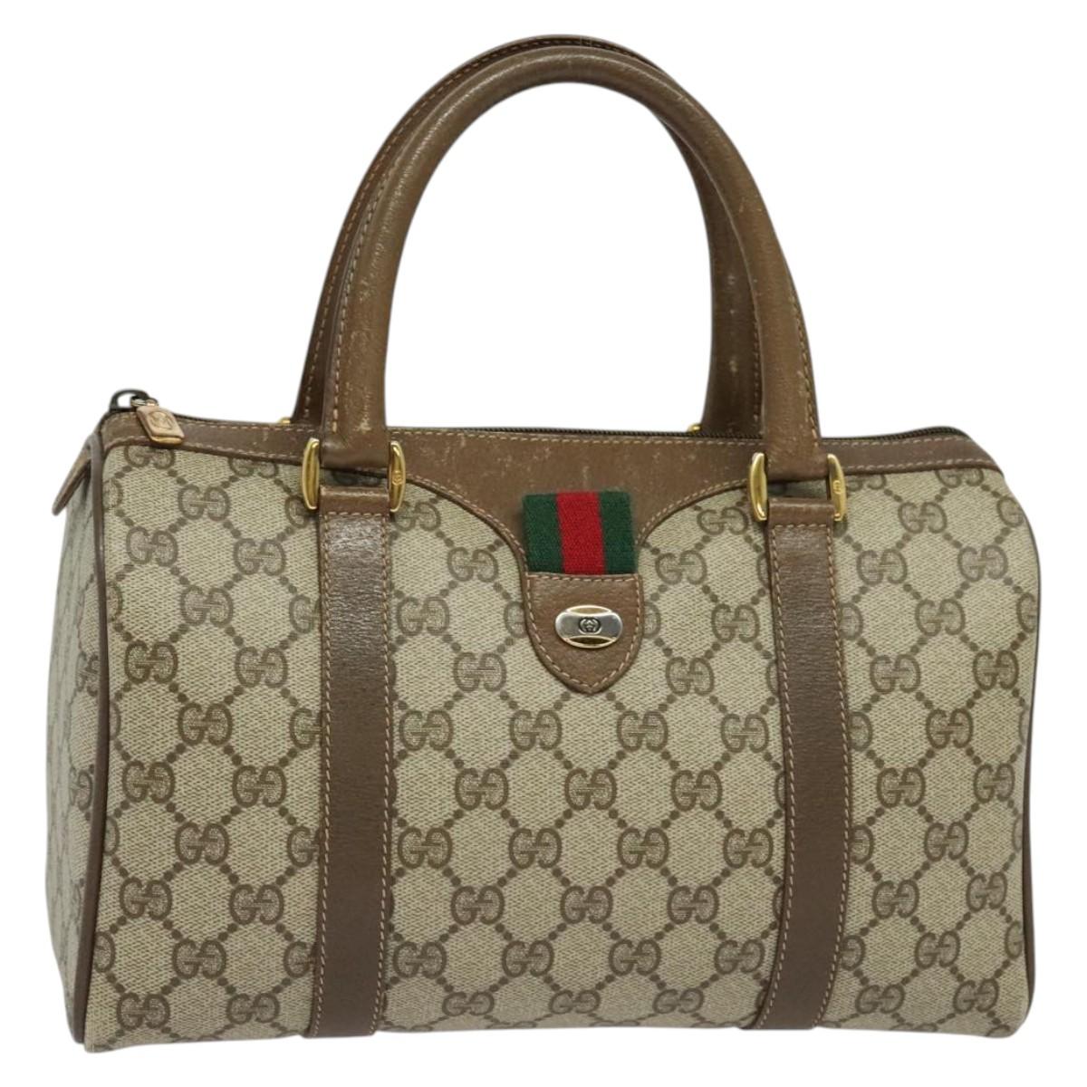GUCCI GG Supreme Web Sherry Line Boston Bag PVC Beige Gold 40 02 006 Auth 141698