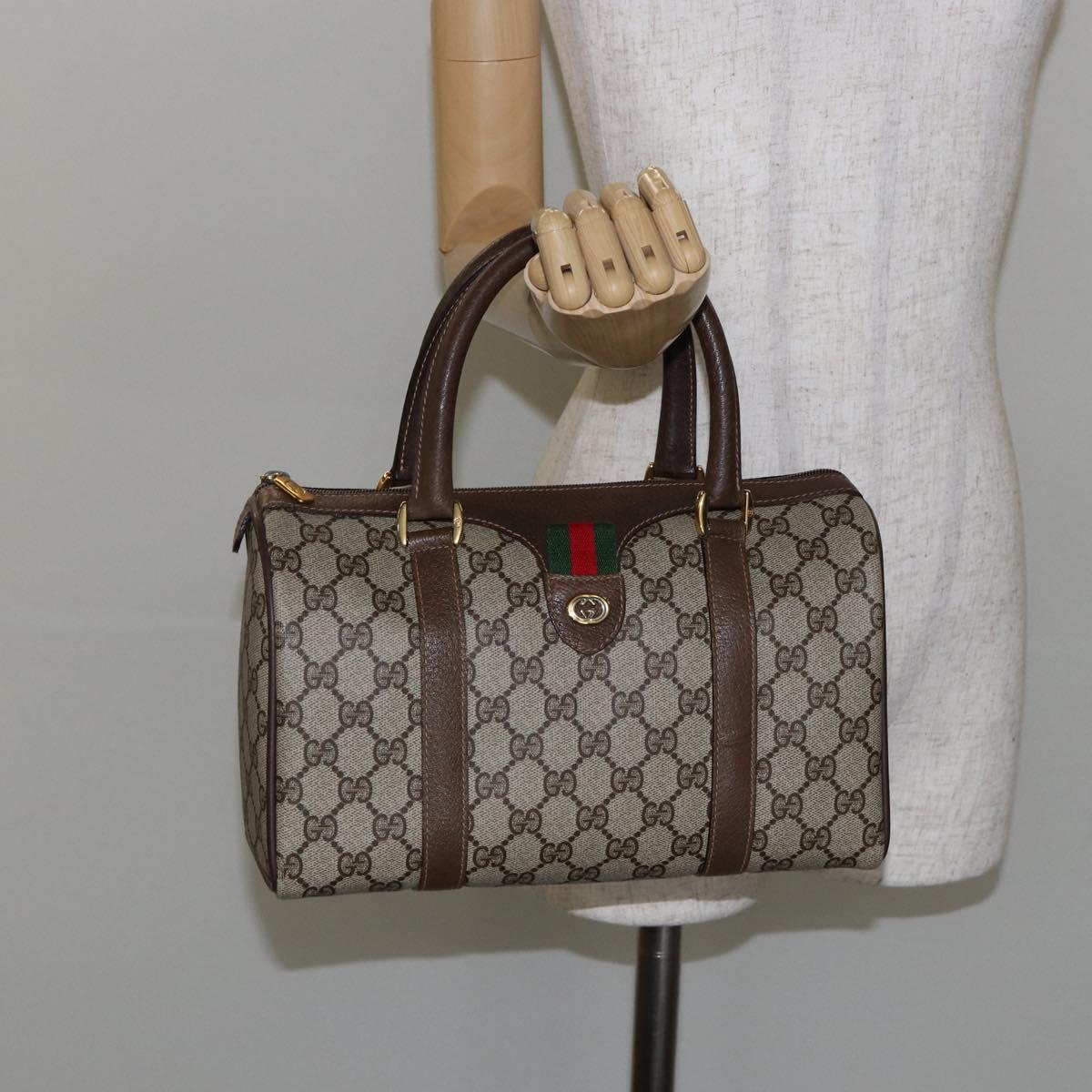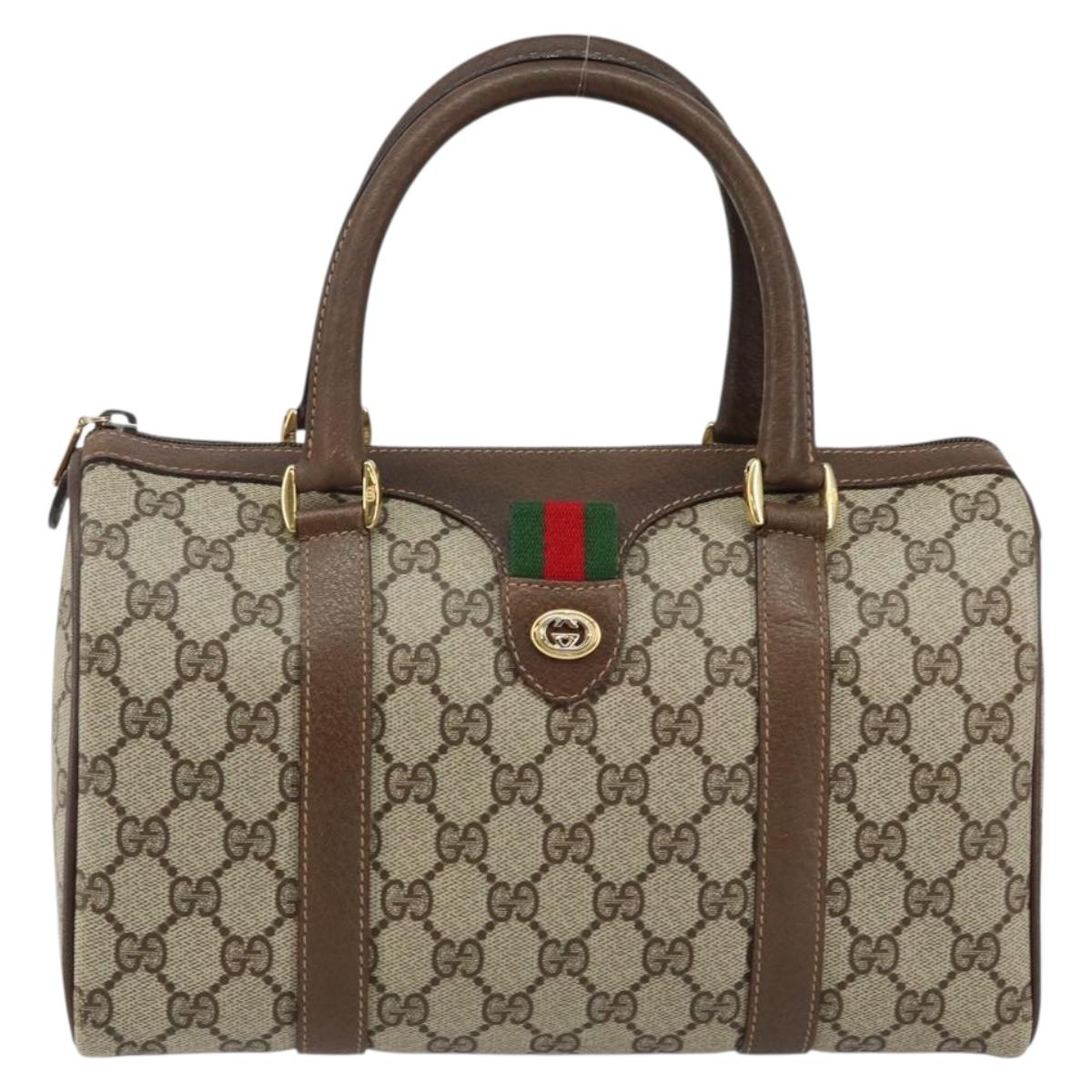 GUCCI GG Supreme Web Sherry Line Boston Bag PVC Beige Gold 40 02 006 Auth 142894