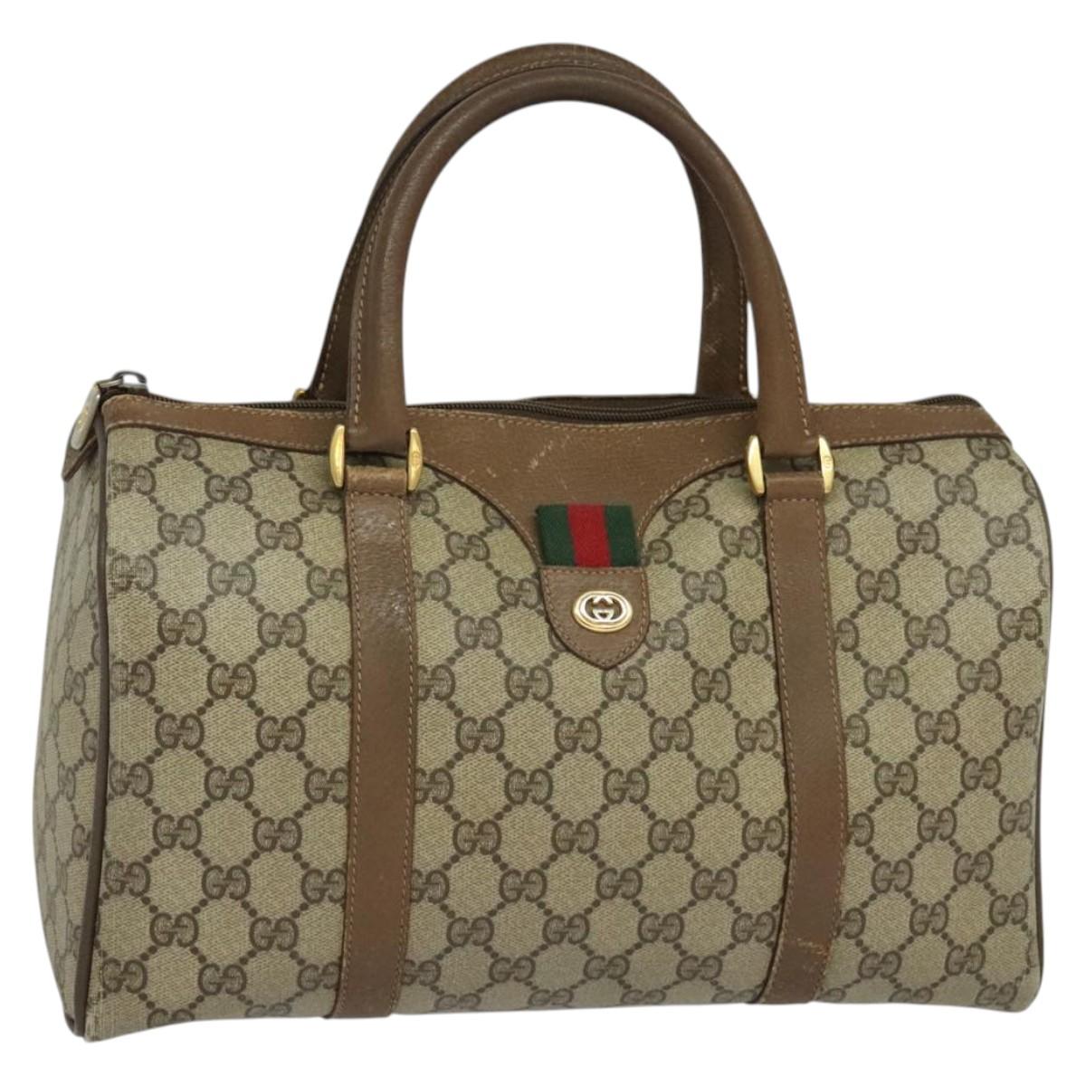 GUCCI GG Supreme Web Sherry Line Boston Bag PVC Beige Gold 40 02 007 Auth KD431