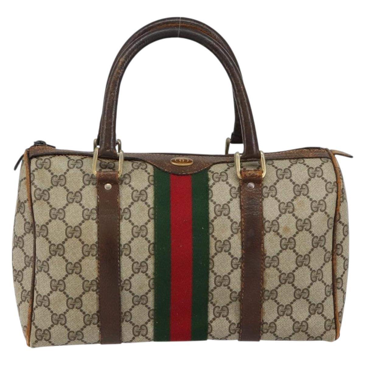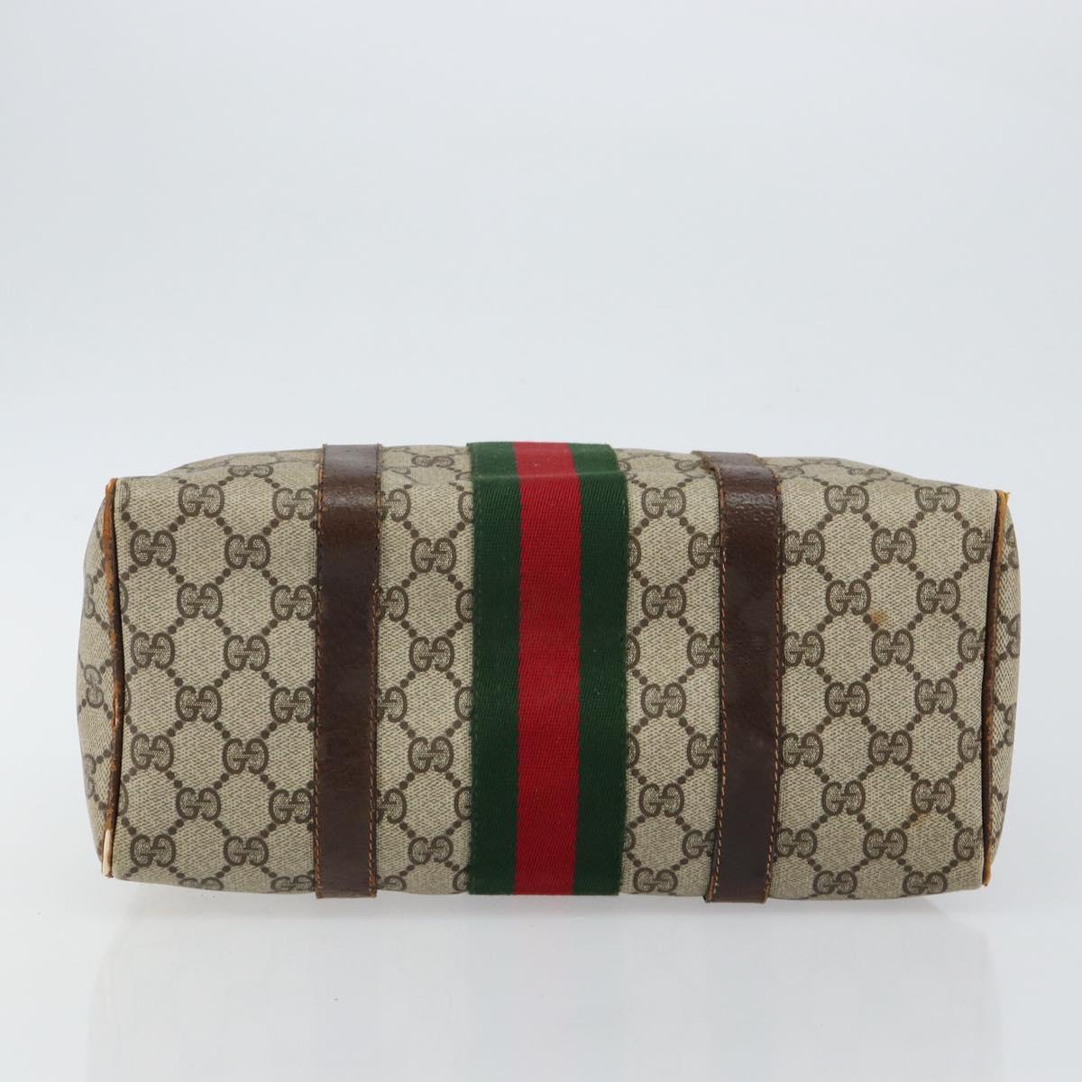 GUCCI GG Supreme Web Sherry Line Boston Bag PVC Beige Gold Auth 144221
