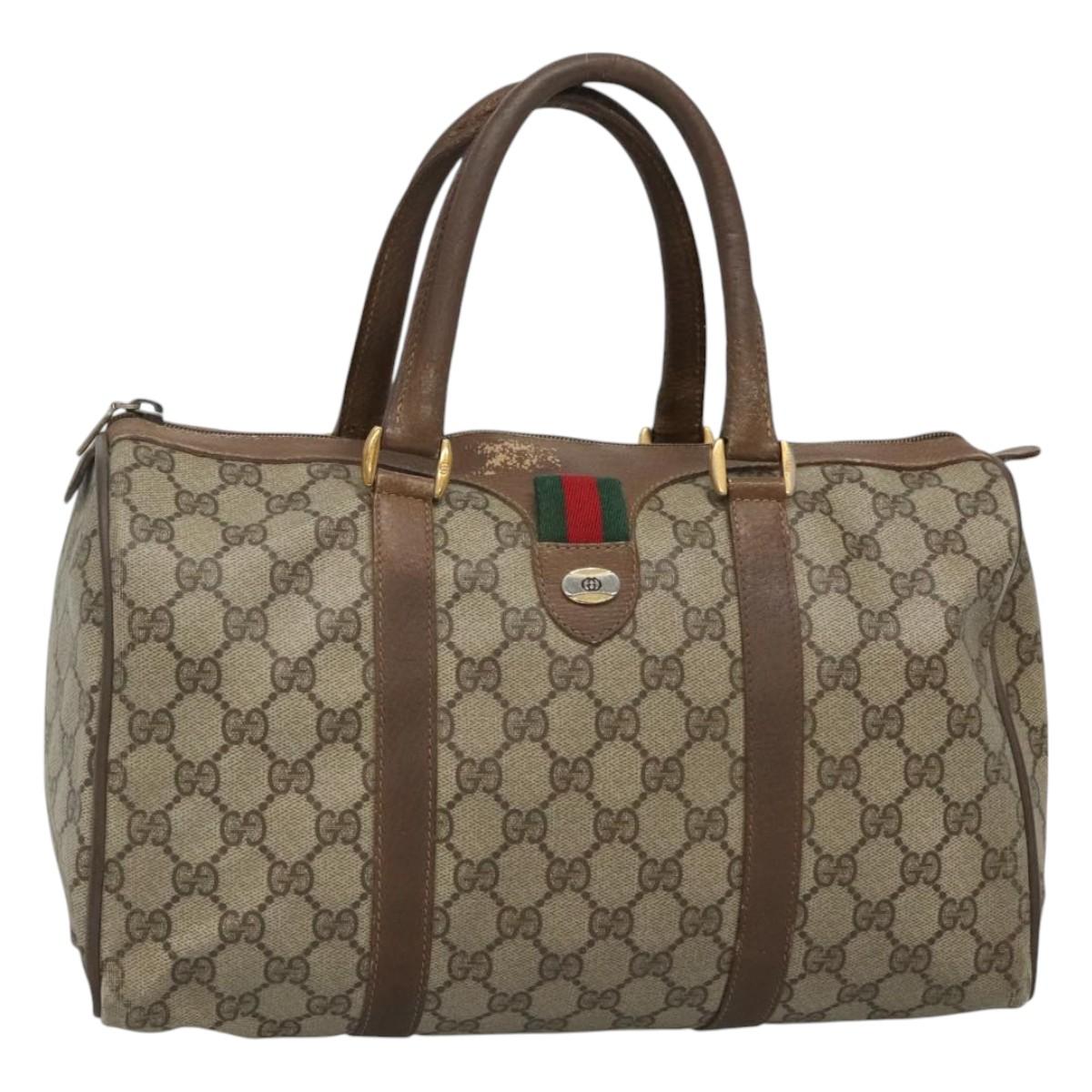 GUCCI GG Supreme Web Sherry Line Boston Bag PVC Beige Green Red Auth bs22874
