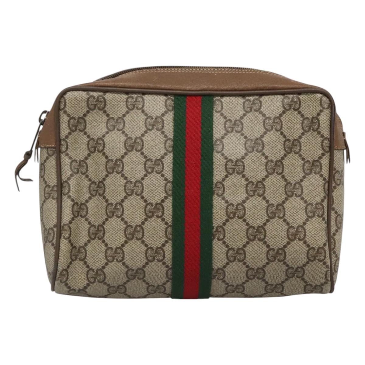 GUCCI GG Supreme Web Sherry Line Clutch Bag PVC Beige 89 01 012 Auth BA2439