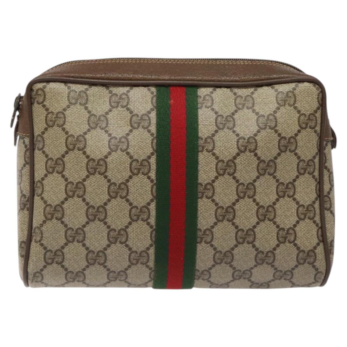 GUCCI GG Supreme Web Sherry Line Clutch Bag PVC Beige 89 01 012 Auth bs26177