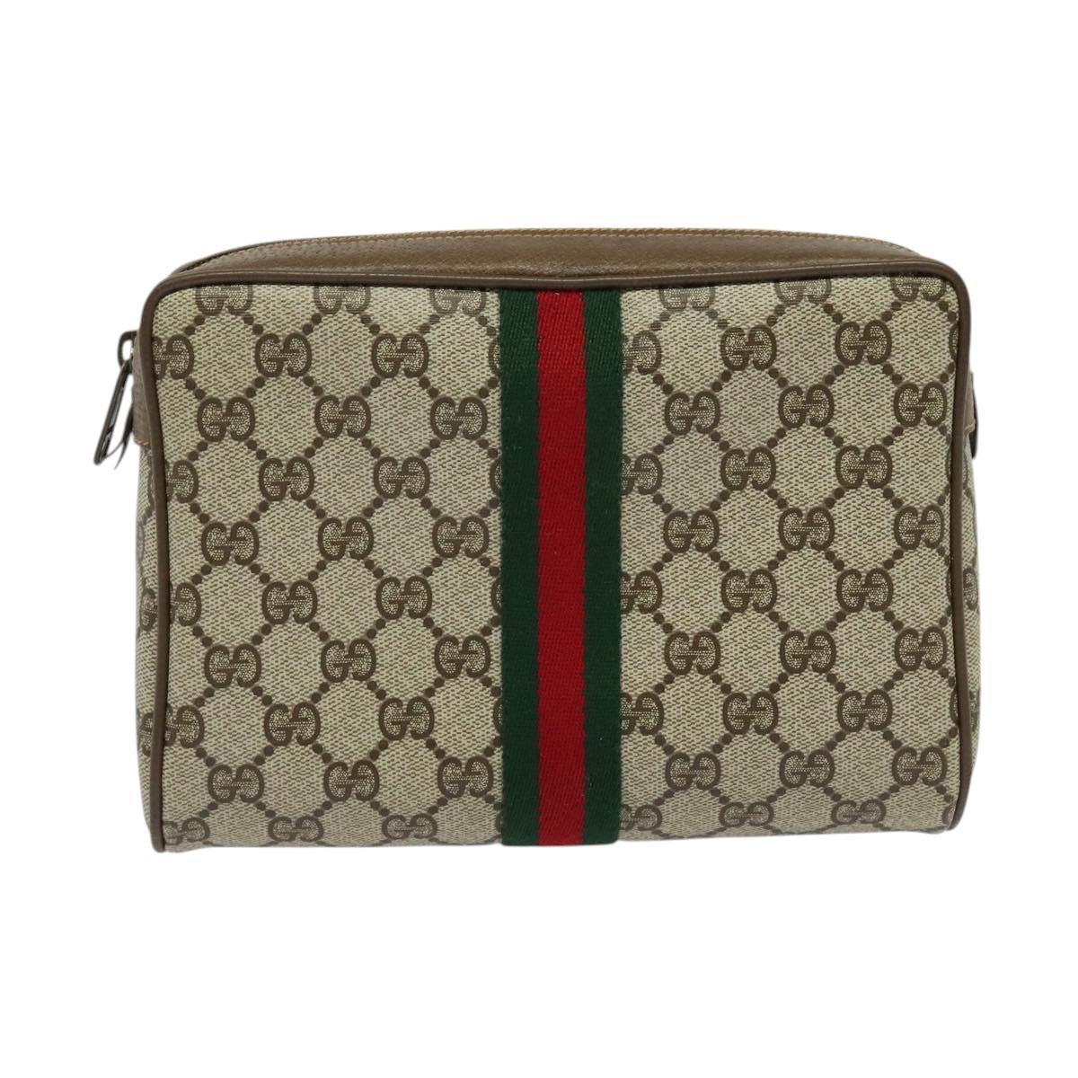 GUCCI GG Supreme Web Sherry Line Clutch Bag PVC Beige 89 01 012 Auth ep9182