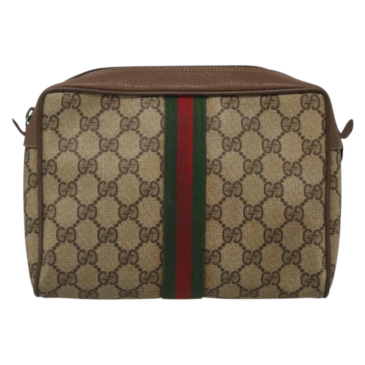 GUCCI GG Supreme Web Sherry Line Bag PVC Beige Brown 89 01 012 Auth 134730