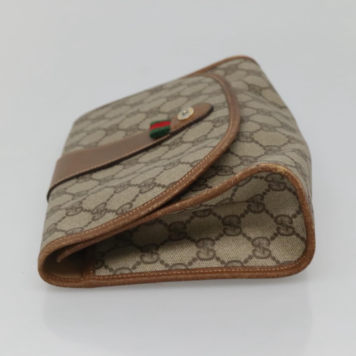 GUCCI GG Supreme Web Sherry Line Clutch Bag PVC Beige Gold 014 122 Auth 113335