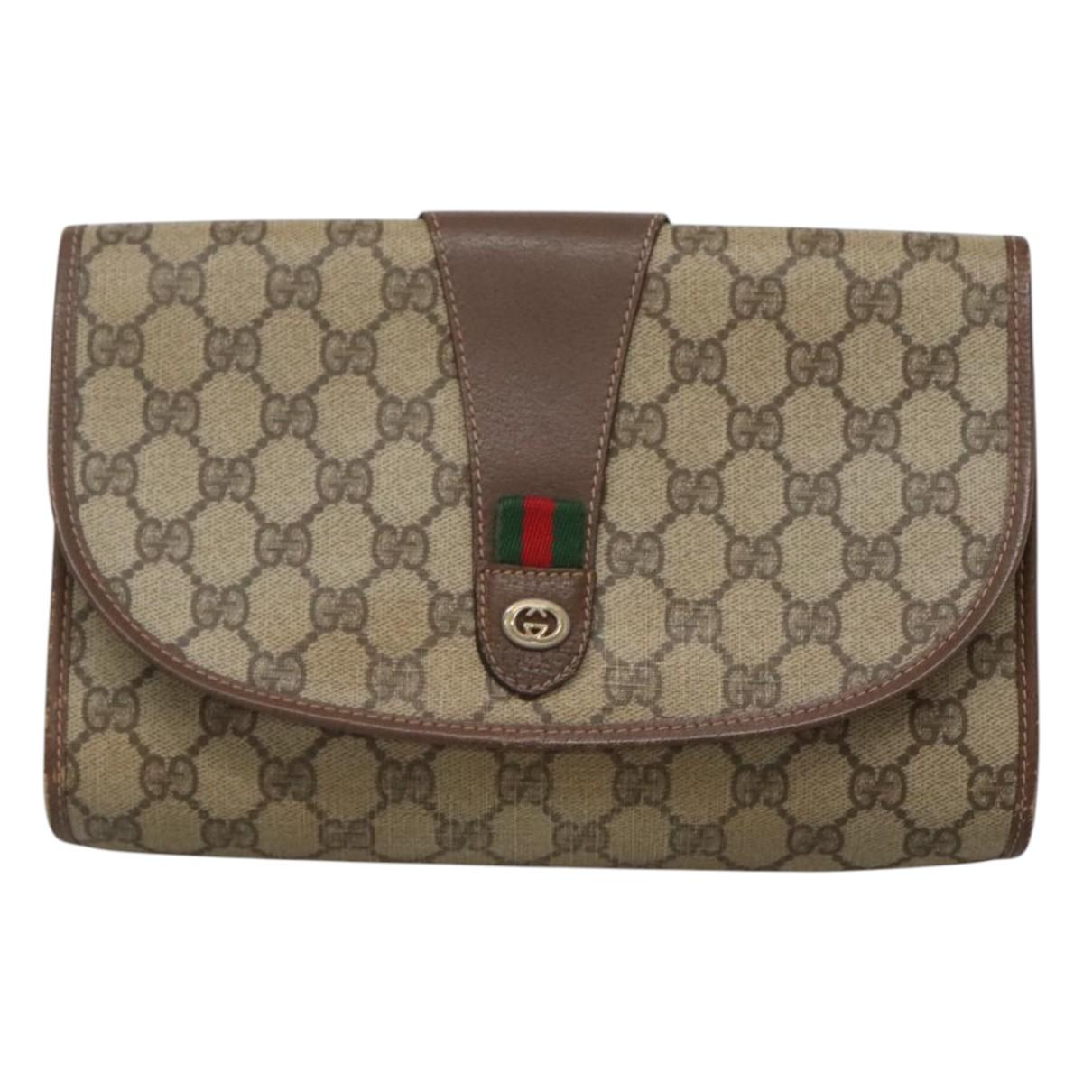 GUCCI GG Supreme Web Sherry Line Bag PVC Beige Gold 156 01 030 Auth am8209