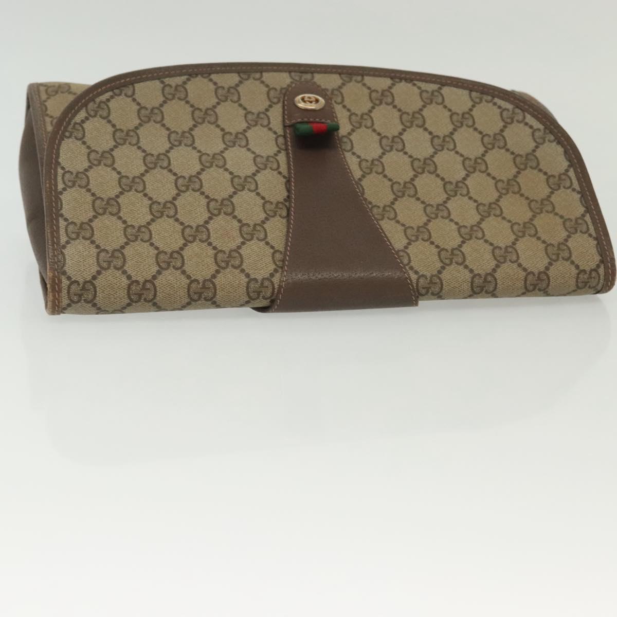 GUCCI GG Supreme Web Sherry Line Clutch Bag PVC Beige 156 01 031 Auth 139574