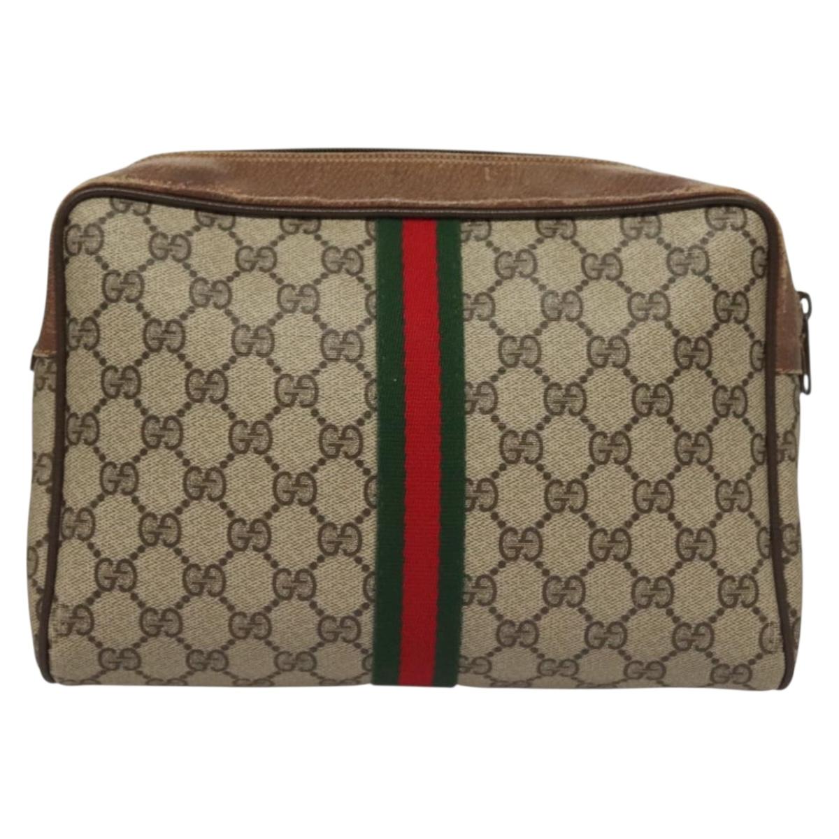 GUCCI GG Supreme Web Sherry Line Bag PVC Beige Gold 378 02 005 Auth BA4264